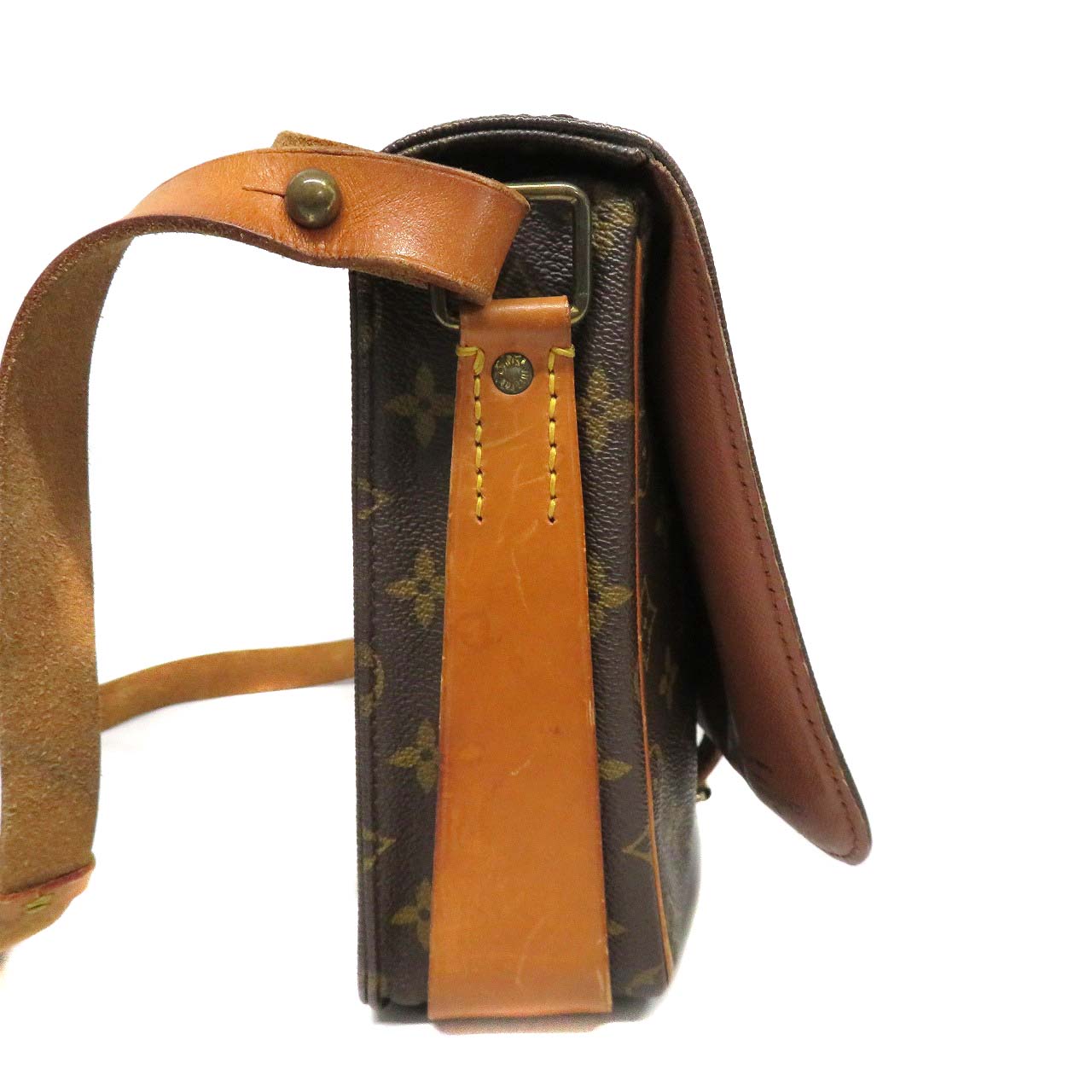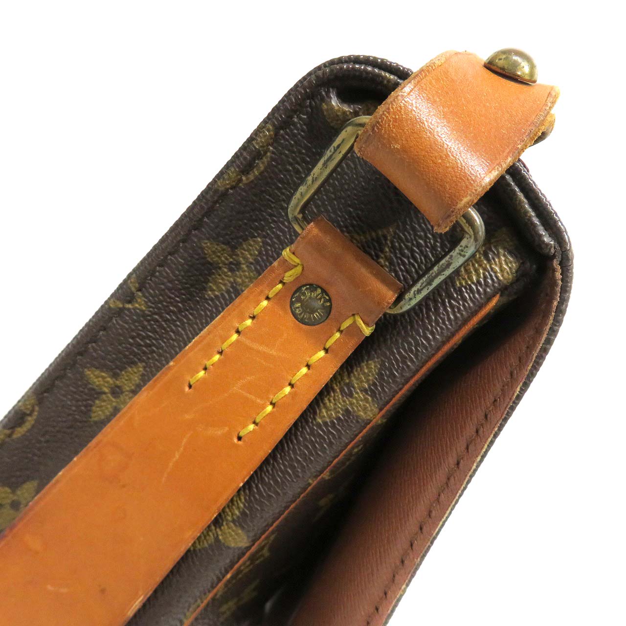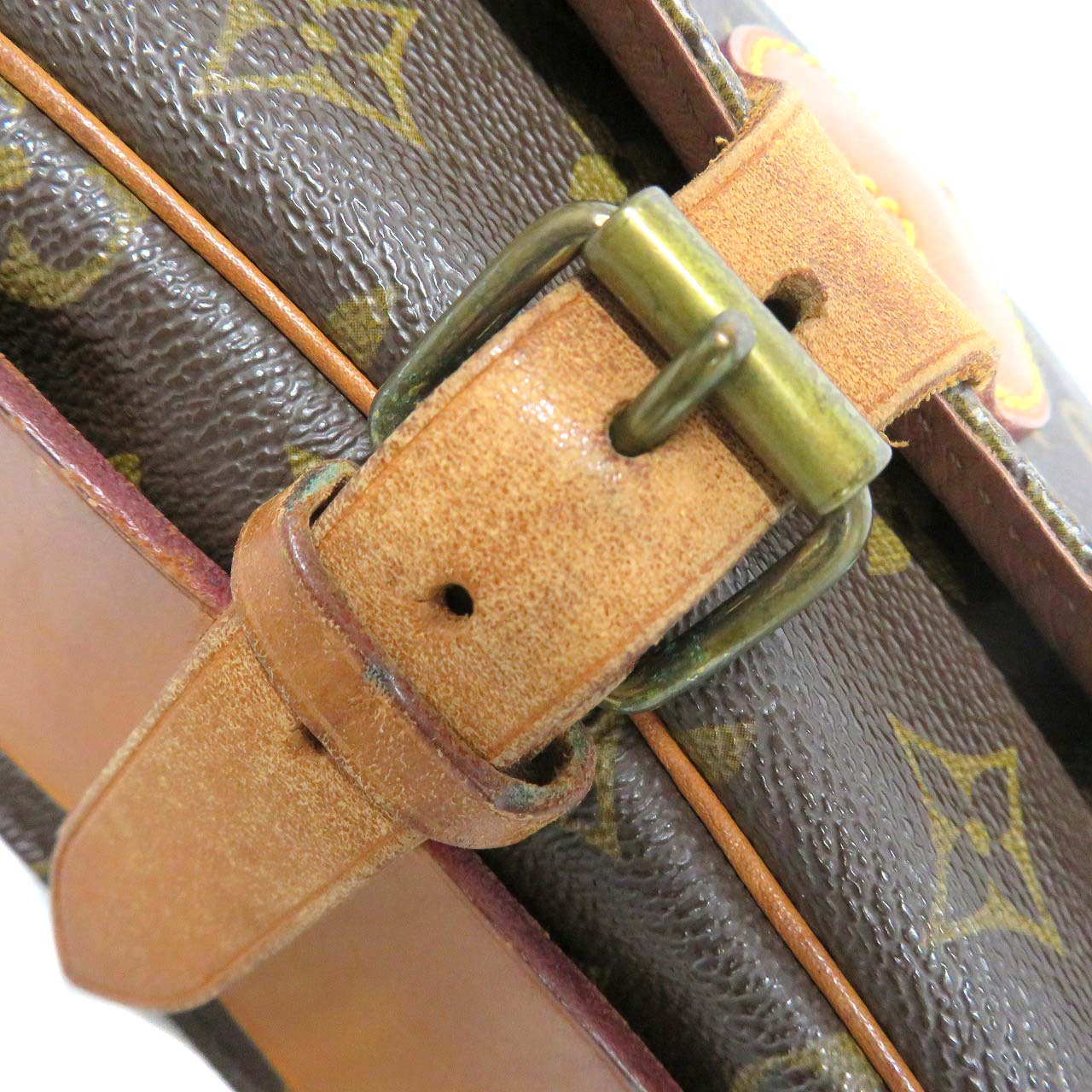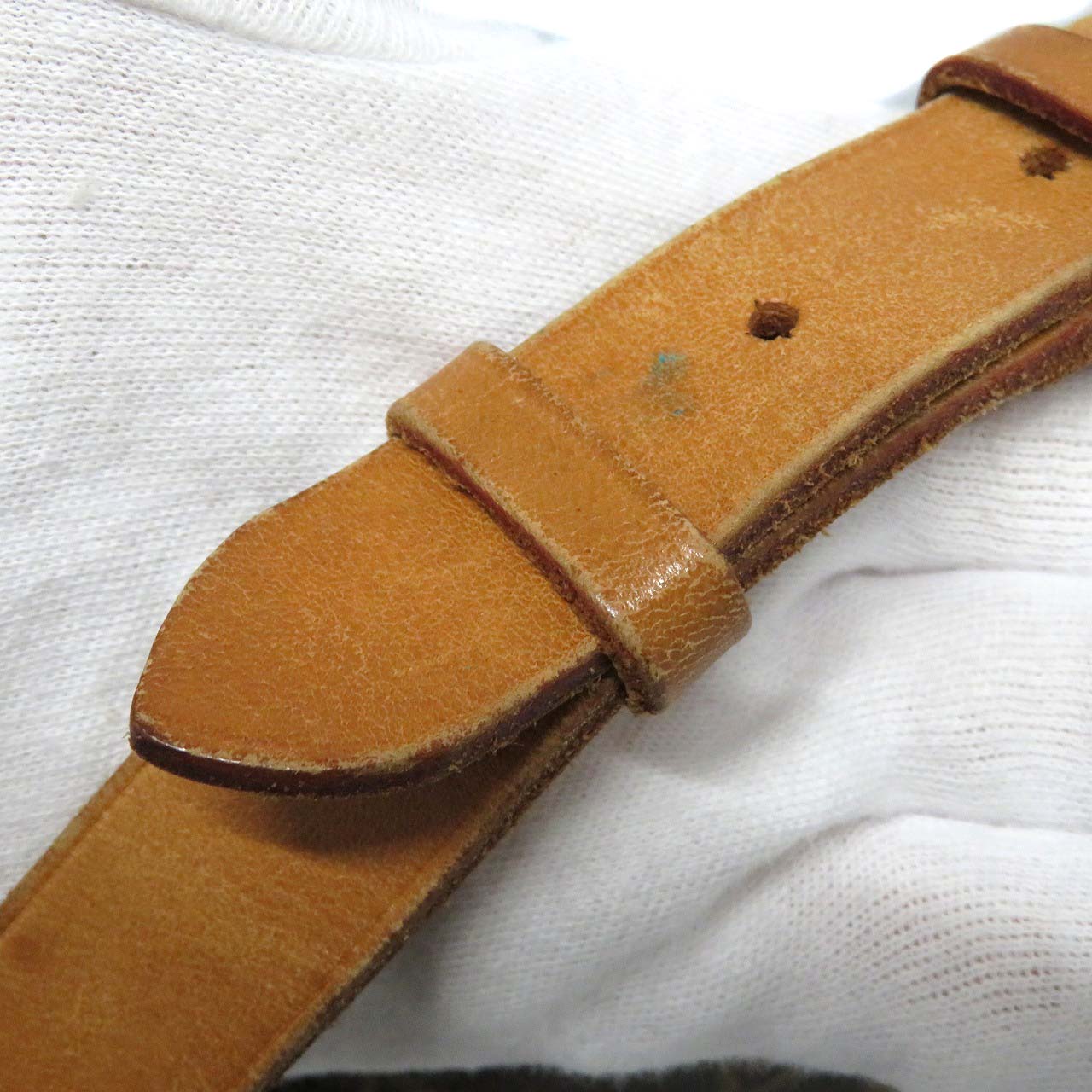 | 商品状態 | ・型崩れ、フラップ反り、小さいヒビ ・内側スレ ・金具キズ、変色、青サビ ・角スレ ・ヌメ革ヤケ、シミ、スレ ・ショルダーストラップ内側スレ、黒ずみ、使用感強め ・嫌なニオイ無し 店頭でも販売している為、画像に無いキズ等が付く可能性がありますので予めご了承くださいませ。 |