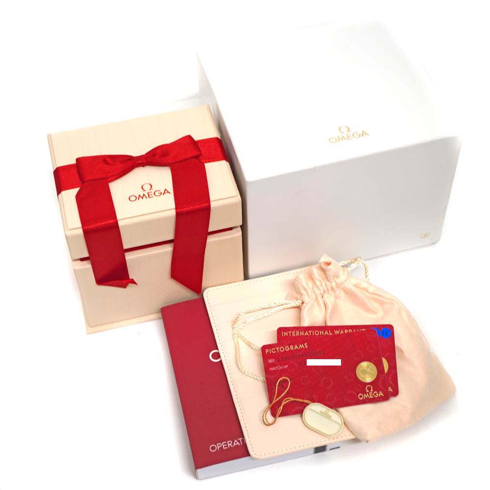 オメガの代表的なコレクションで人気を集めているモデルになります。 サテン仕上げモデルで傷の付きにくいサファイア・クリスタル ガラスからシルバーダイアルを眺めることができます。 ローマ数字が刻印されたべゼルも特徴的なデザインとなっております。 生産終了品となりますのでお探しの方はこの機会に是非いかがでしょうか。