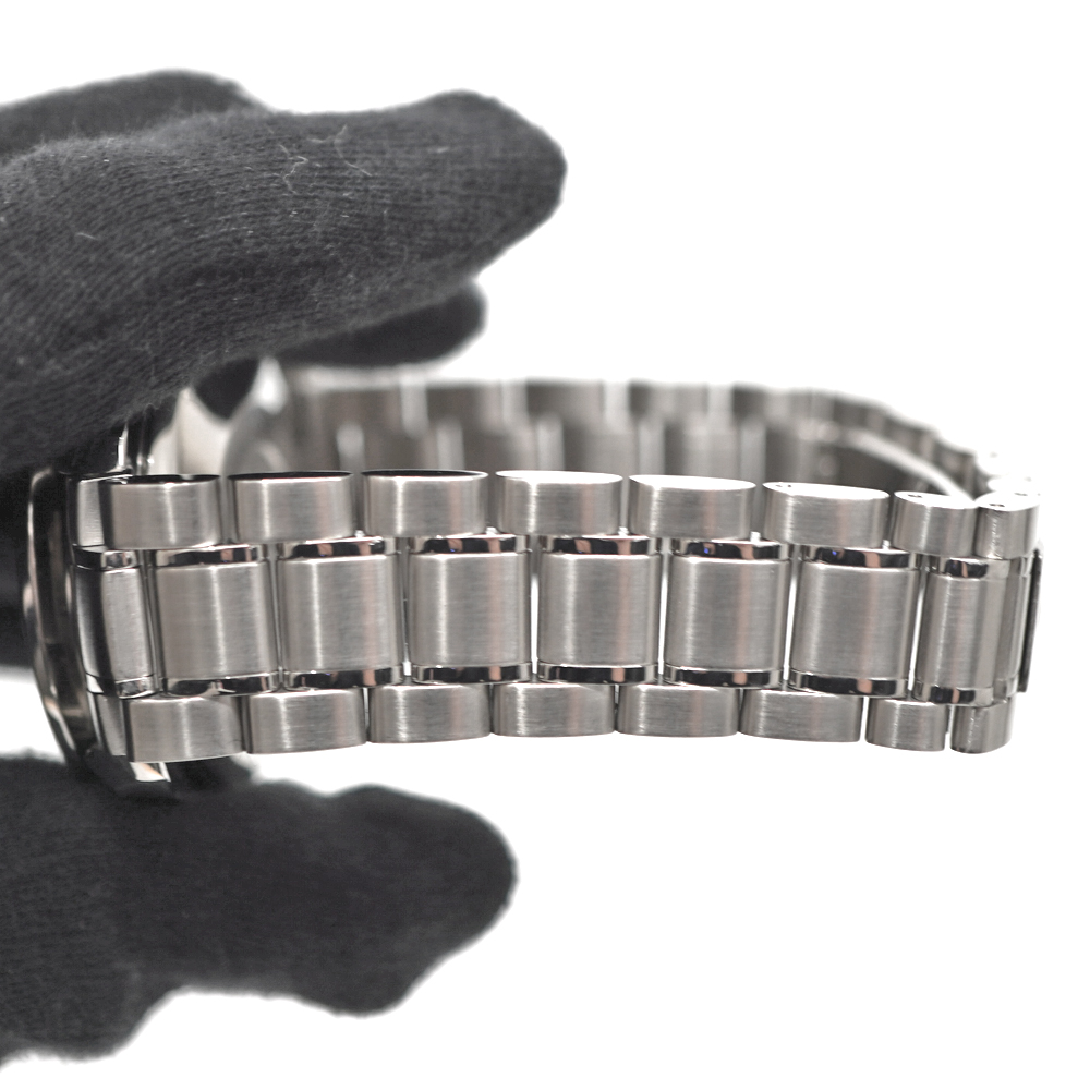 スピードマスタープロフェッショナルのバリエーションモデルとして登場した自動巻きクロノグラフモデルです。 ダイヤル全体に無駄なく配置されたインデックスは視認性とスポーティな印象のお時計です。 シンプルなデザインの為、ビジネスシーンやフォーマルなシーンにもお使いいただけます。 生産終了品の為お探しの方はこの機会に是非いかがでしょうか。