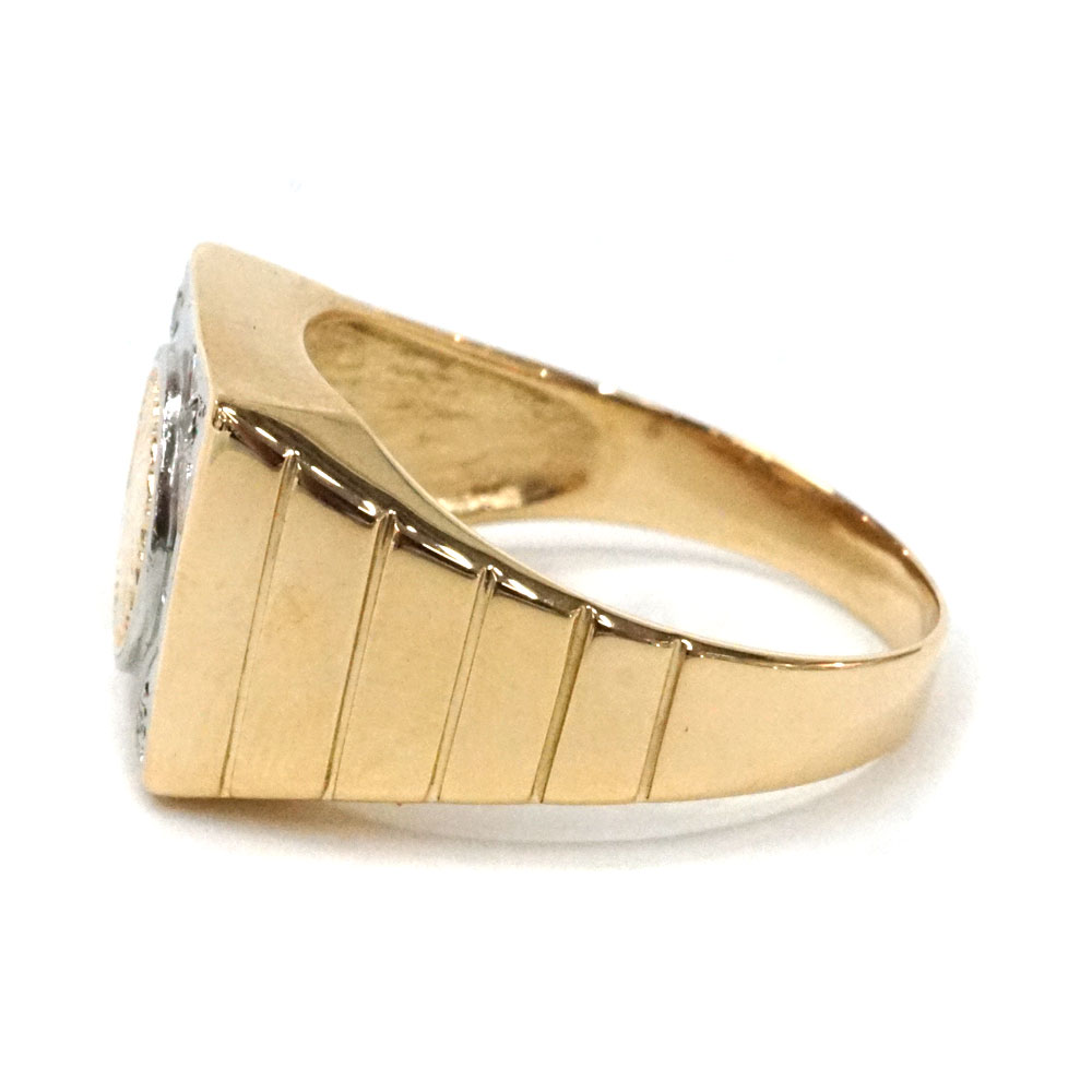 コインがセッティングされたシンプルながらも存在感のあるデザインのリングです。 お手元のアクセントにおすすめです。