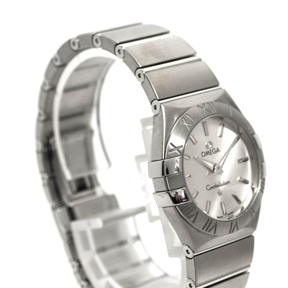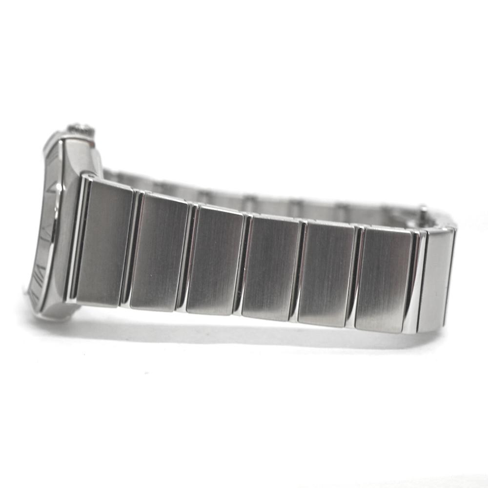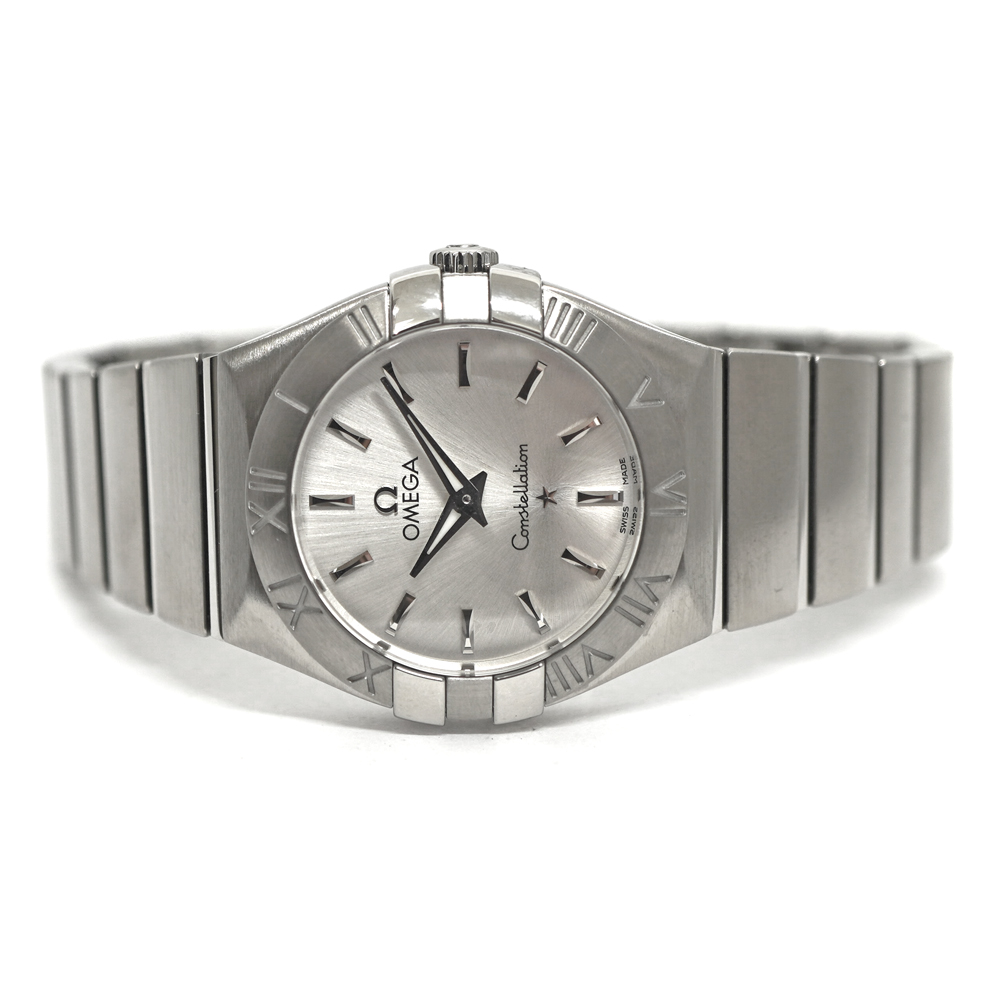 オメガの代表的なコレクションで人気を集めているモデルになります。 サテン仕上げモデルで傷の付きにくいサファイア・クリスタル ガラスからシルバーダイアルを眺めることができます。 ローマ数字が刻印されたべゼルも特徴的なデザインとなっております。 生産終了品となりますのでお探しの方はこの機会に是非いかがでしょうか。