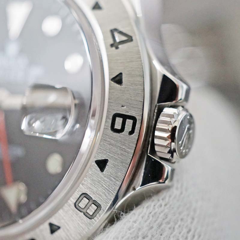 1991年には両支え型のテンプ受けを採用しCal.3185を搭載する「Ref.16570」は 実用的なGMT機能とデザイン性の高さから、誕生から30年以上を経た現在でも高い人気を誇っています。