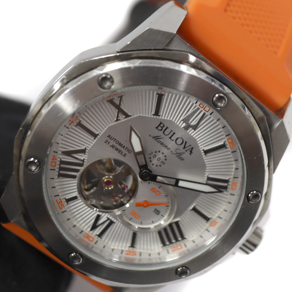 | 商品説明 | BULOVA【ブローバ】のマリンスターのご紹介です。 優れた防水性能を有しながら、スポーティーさとラグジュアリーな雰囲気を併せ持つデザインが特徴的なお時計です。 スケルトンデザインとなっており、遊び心が掻き立てられるデザインが魅力的です。 お探しの方はこの機会にいかがでしょうか。 ※尚、当サイトの販売金額より店頭での販売金額の方をお安く設定させて頂いております。予め、ご了承下さいませ。(一部セール品除く) |