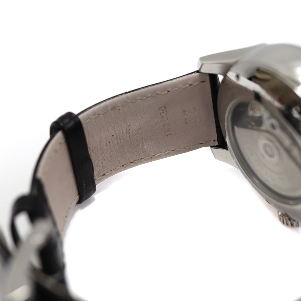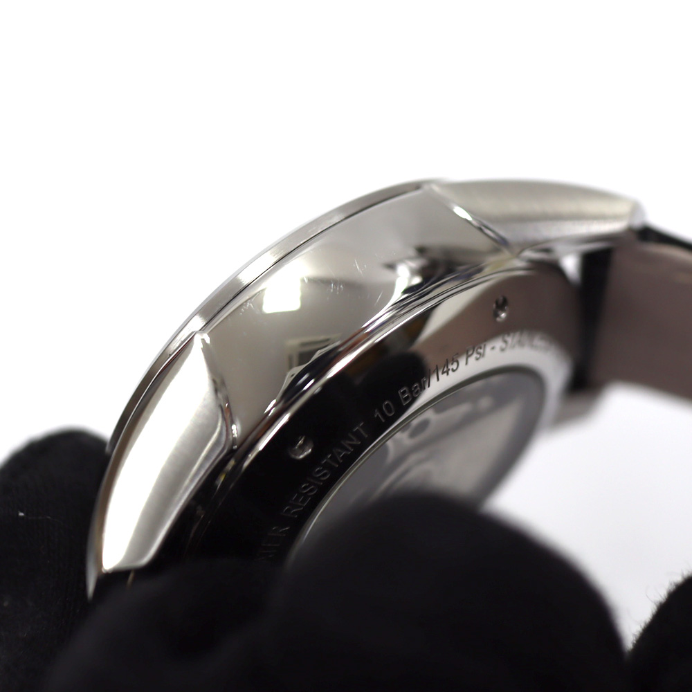 | 素材 | ケース:ステンレススチール ブレス:レザー ダイヤル:ブラック 風防:サファイアガラス |