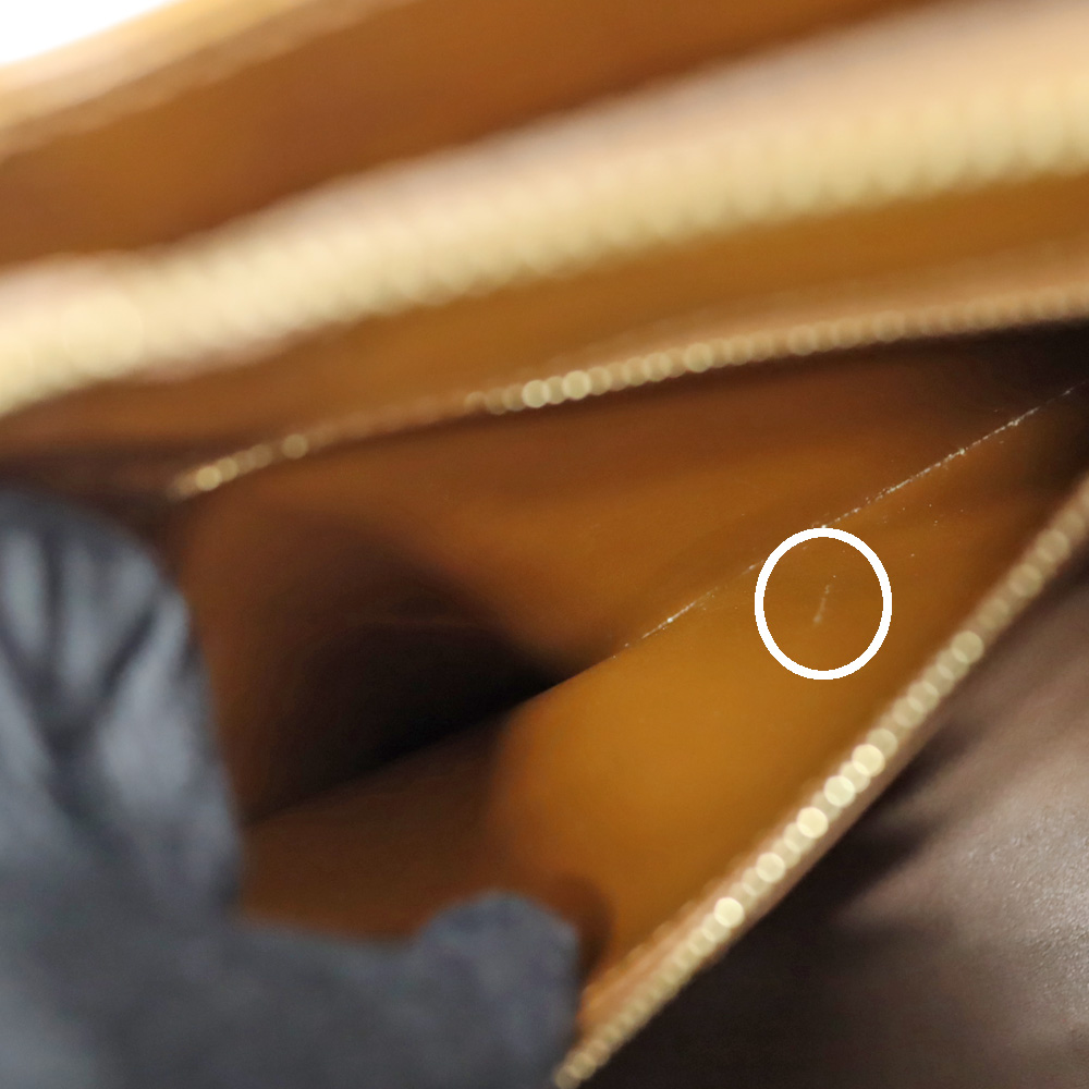 | 商品状態 | ■一般的な使用感のある中古品です。 ■角やコバのわずかなスレ ■金具の小傷 ■内側開口部付近の剥がれ ■一部ステッチの糸飛び ■角付近一部汚れ ■店頭にて同時販売中の為展示による多少のキズ・汚れには予めご了承ください。 |