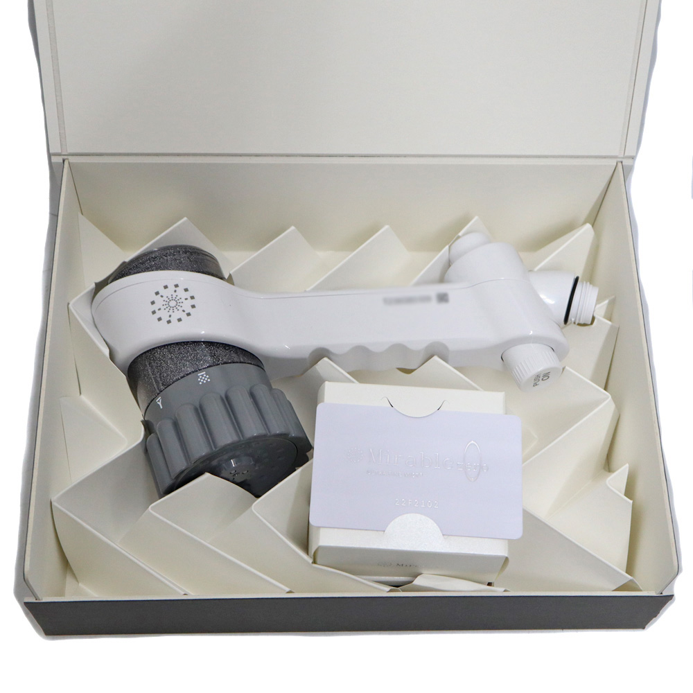 ウルトラファインバブル(超微細気泡)技術を搭載した高機能シャワーヘッドです。 1μm未満の微細な気泡を含んだ3種類の水流・・・ (リングストレート・スプラッシュストレート・マイクロトルネードミスト)により、 毛穴や隙間の汚れまでしっかり洗浄しつつ、肌や髪にやさしい使用感を実現します。 高性能ながら節水効果もあり、付属のトルネードスティックで水道水の塩素低減も可能です。 従来のミラブルシリーズより水流が充実し、 シャワーじゃないシャワーとして新しい体験ができるモデルです。 ぜひいかがでしょうか。
