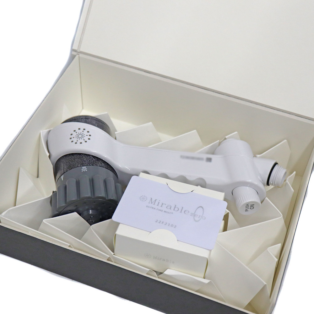 ウルトラファインバブル(超微細気泡)技術を搭載した高機能シャワーヘッドです。 1μm未満の微細な気泡を含んだ3種類の水流・・・ (リングストレート・スプラッシュストレート・マイクロトルネードミスト)により、 毛穴や隙間の汚れまでしっかり洗浄しつつ、肌や髪にやさしい使用感を実現します。 高性能ながら節水効果もあり、付属のトルネードスティックで水道水の塩素低減も可能です。 従来のミラブルシリーズより水流が充実し、 シャワーじゃないシャワーとして新しい体験ができるモデルです。 ぜひいかがでしょうか。