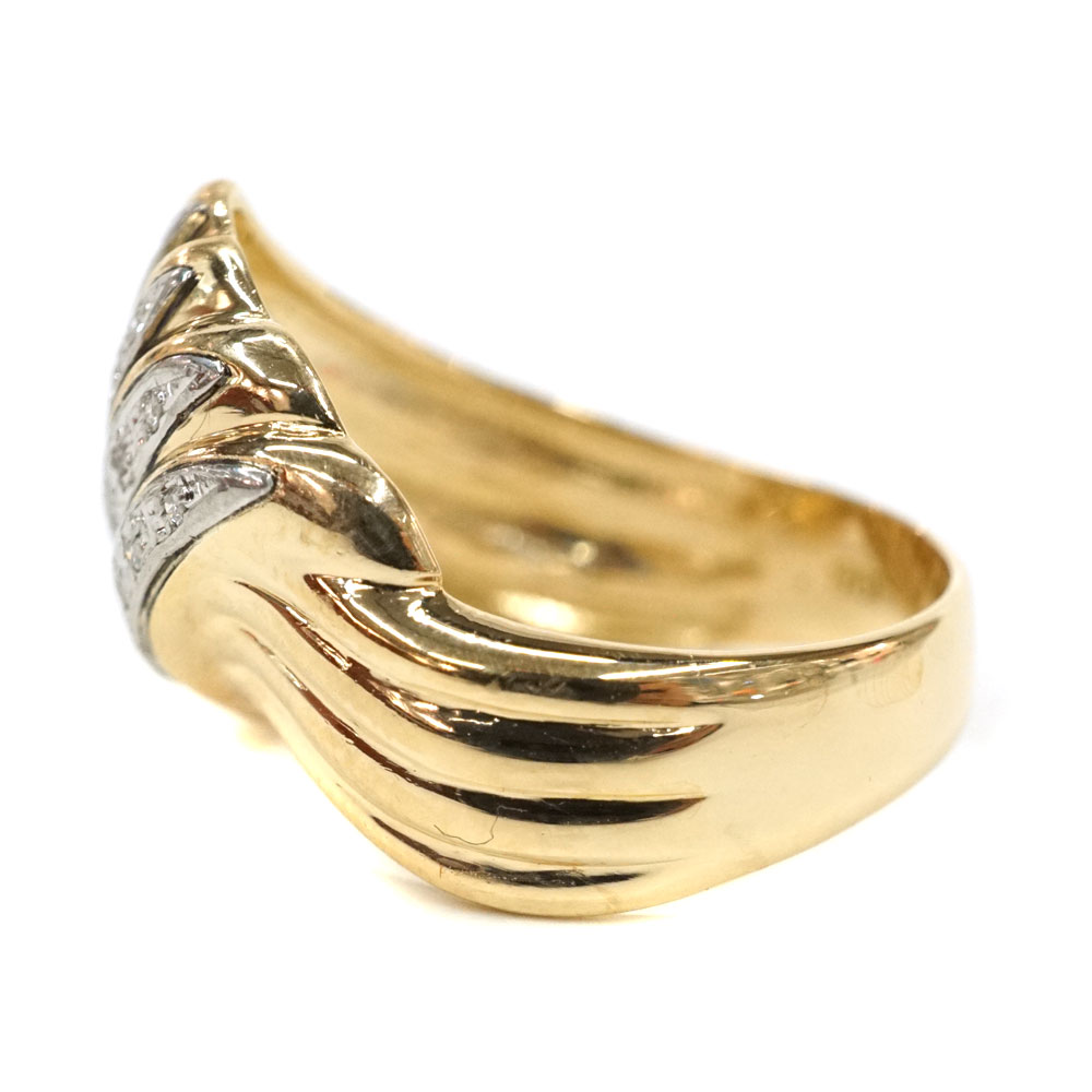 2カラーの地金が美しく重なり合ったデザインです。 お手元のアクセントにぜひいかがでしょうか。