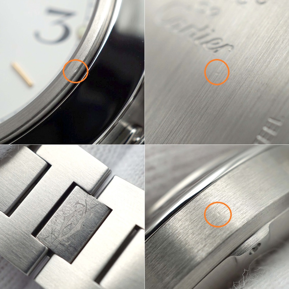 | 商品状態 | ■外装仕上げを行っておりますが、取り切れていない小キズや打痕がございます。 ■ブレスにキズやスレがございます。 ■箱に若干汚れ、金具に壊れがございます。(きちんと閉まらず、ロックがきかない状態です。) ■店頭でも販売中のため画像にない傷が付く場合が御座いますのでご了承下さいませ。 |