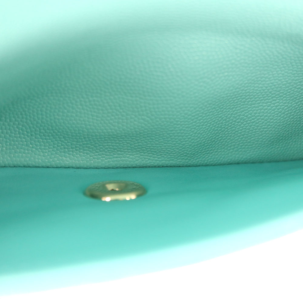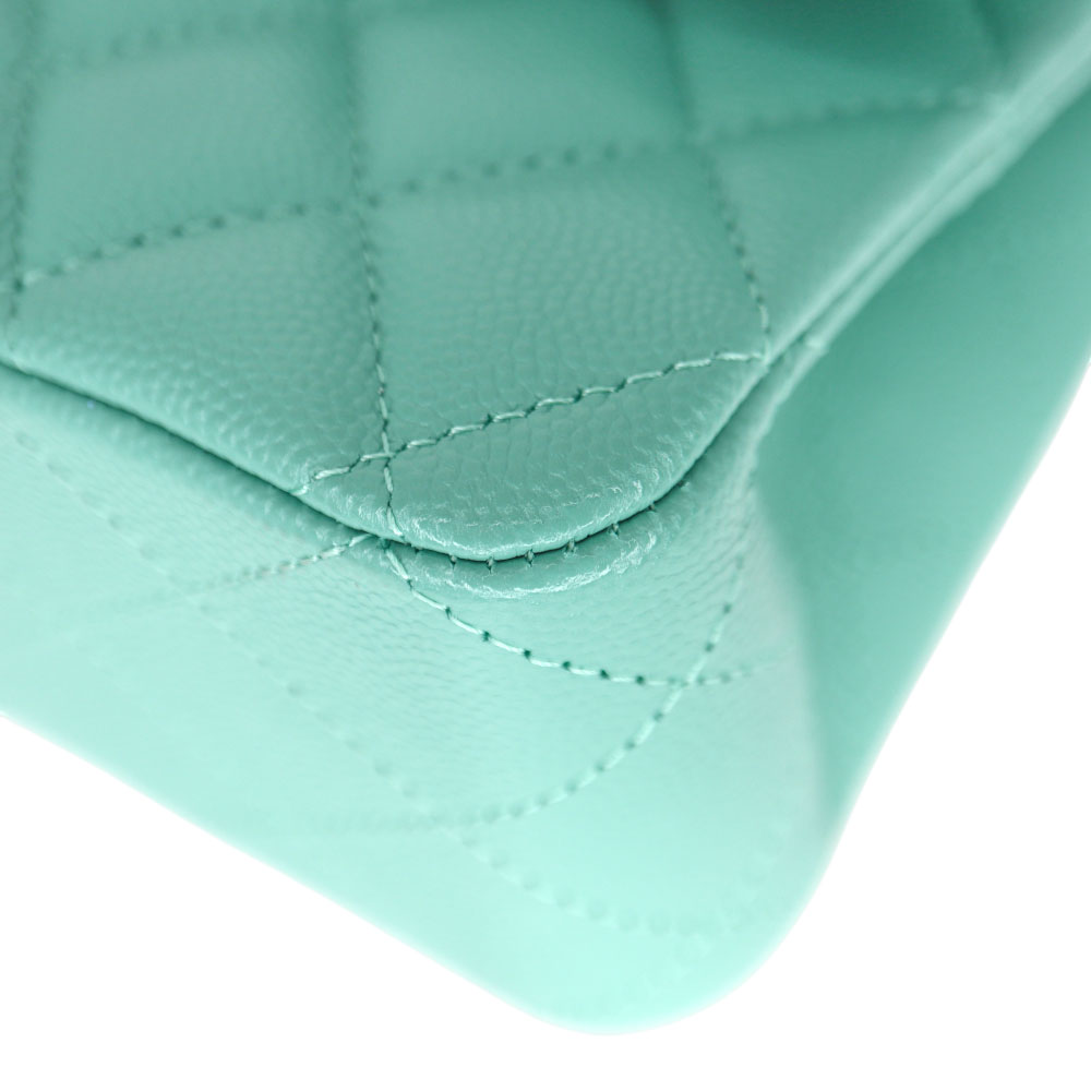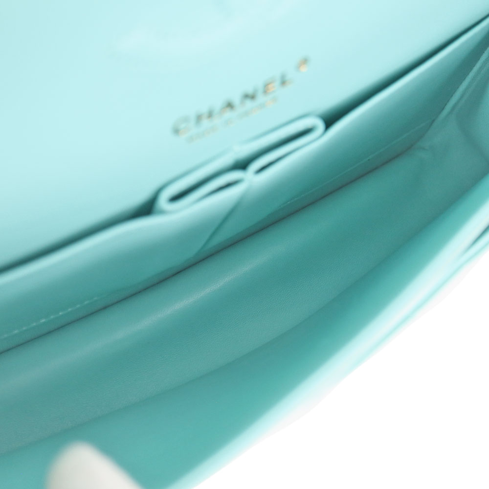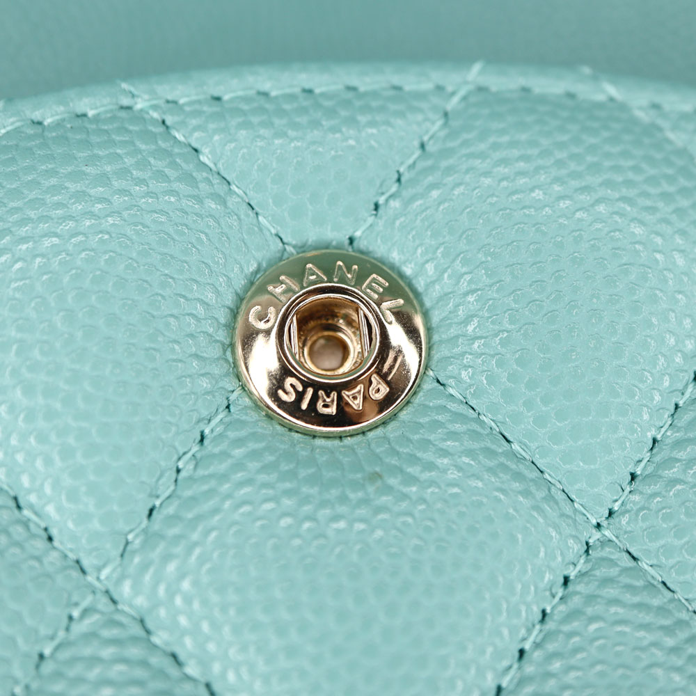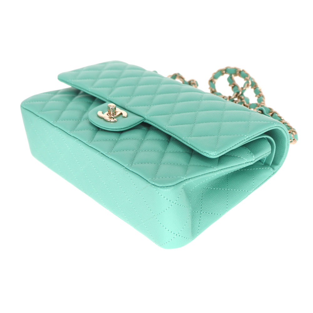 シャネルの定番人気マトラッセ25。 キャビアスキンのタイプで、ダメージに強く高級感のあるお品。 爽やかなレアカラーのティファニーブルーが色鮮やかで目を惹きます。