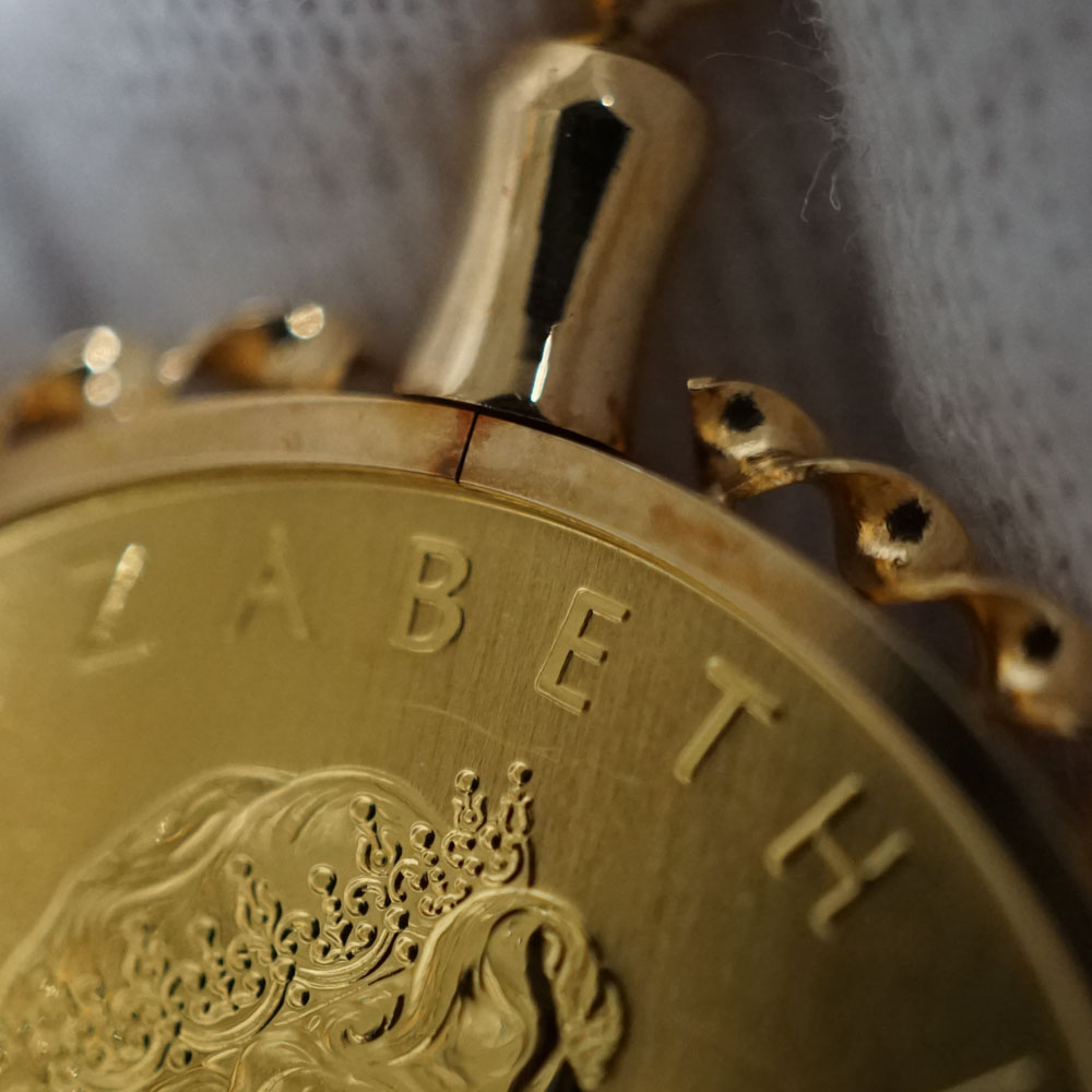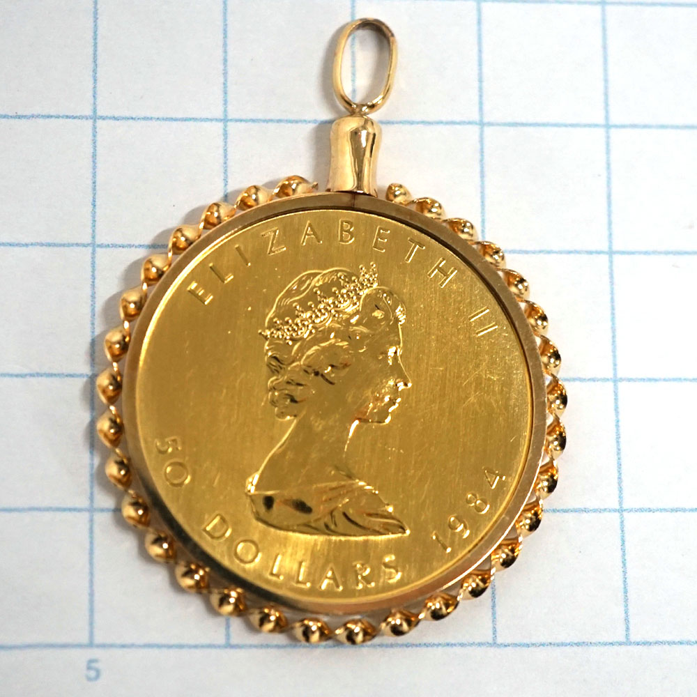 | 商品説明 | メイプルリーフコイントップのご紹介です。 エリザベス女王とメイプルの葉が描かれたコイントップです。 お持ちのチェーンに通して幅広くお使いいただけます。 この機会にぜひいかがでしょうか。