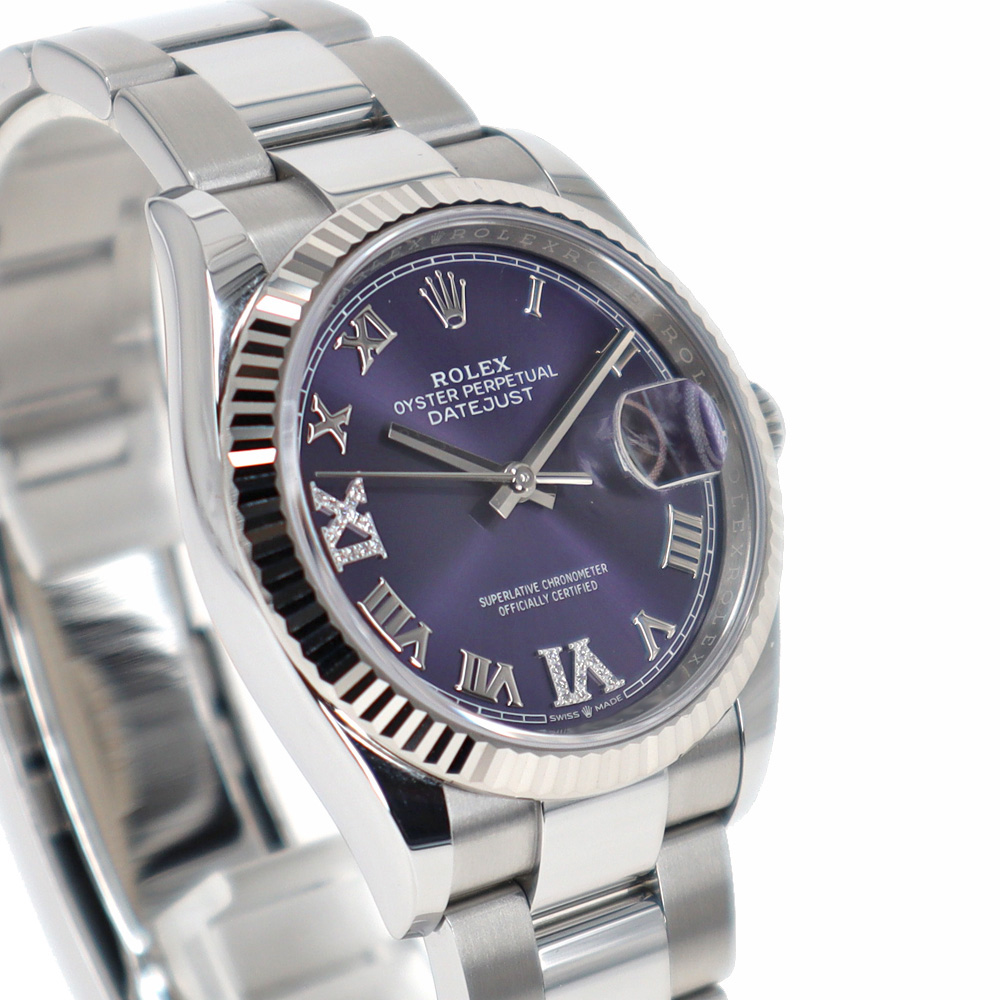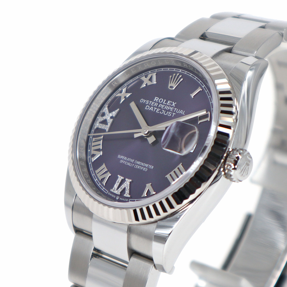 | 商品説明 | ROLEX【ロレックス】 126234 デイトジャスト36 紹介です。 ロレックスの中でも人気の高いデイトジャスト。 パープルの文字盤に6時位置にパヴェダイヤがあしらわれた仕様になっており通常のデイトジャストより特別感のあるオーベルジーヌ。 重量感もあり着け心地も抜群です。