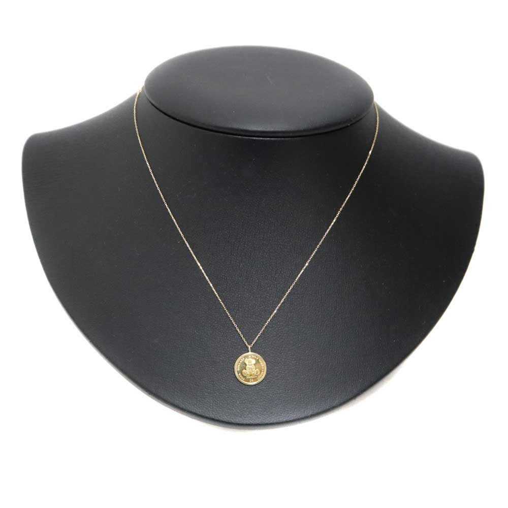 24金コインをモチーフにした、存在感あるネックレスです。 コインにはテディベアが描かれており、可愛らしい印象です。 資産価値としての安心感とジュエリーとしての美しさを兼ね備えています。 この機会に是非いかがでしょうか。