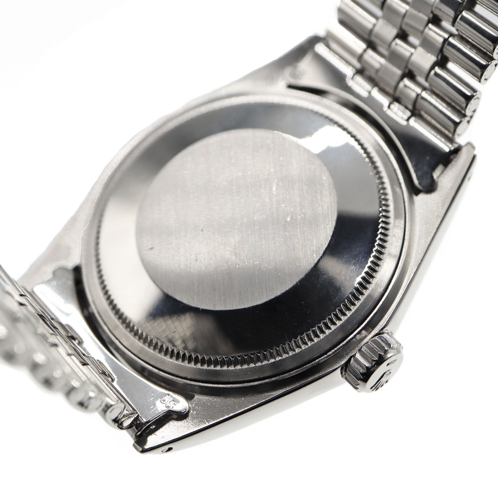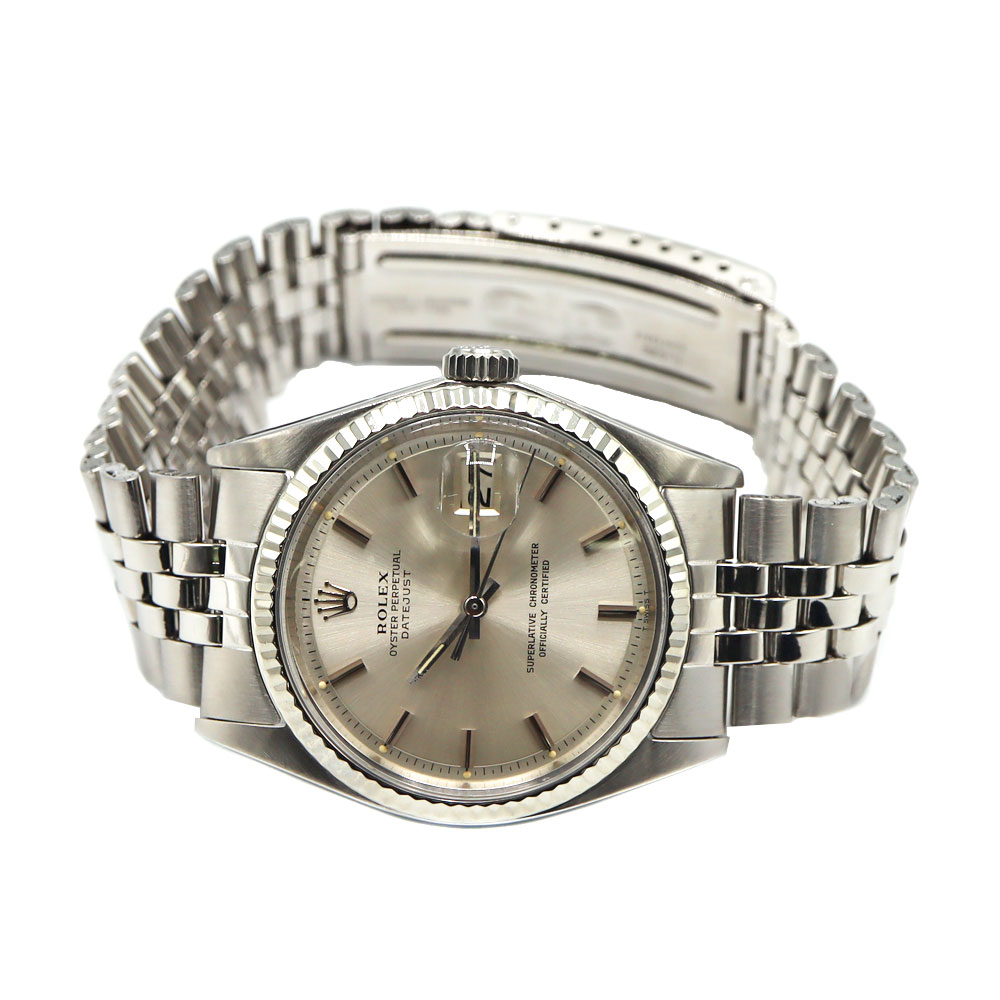 デイトジャストとは午前0時頃瞬時に日付が変わるデイトジャスト機構、全回転式ローターを搭載したパーペチュアル機構、ロレックス三大機構を搭載したモデルです。 シルバーの文字盤が非常にシンプルかつ上品です。