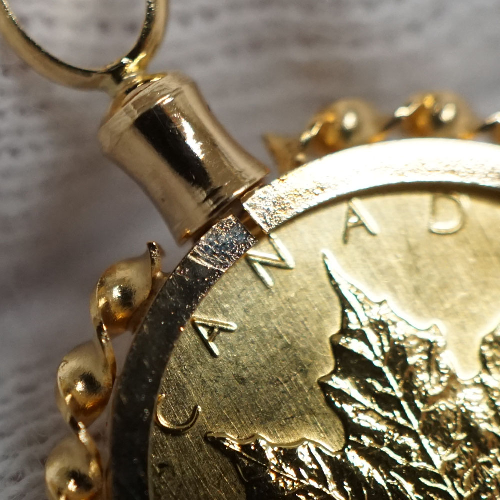 | 商品説明 | メイプルリーフ1/10ozコイントップのご紹介です。 エリザベス女王とメイプルの葉が描かれたコイントップです。 お持ちのチェーンに通して幅広くお使いいただけます。 この機会にぜひいかがでしょうか。
