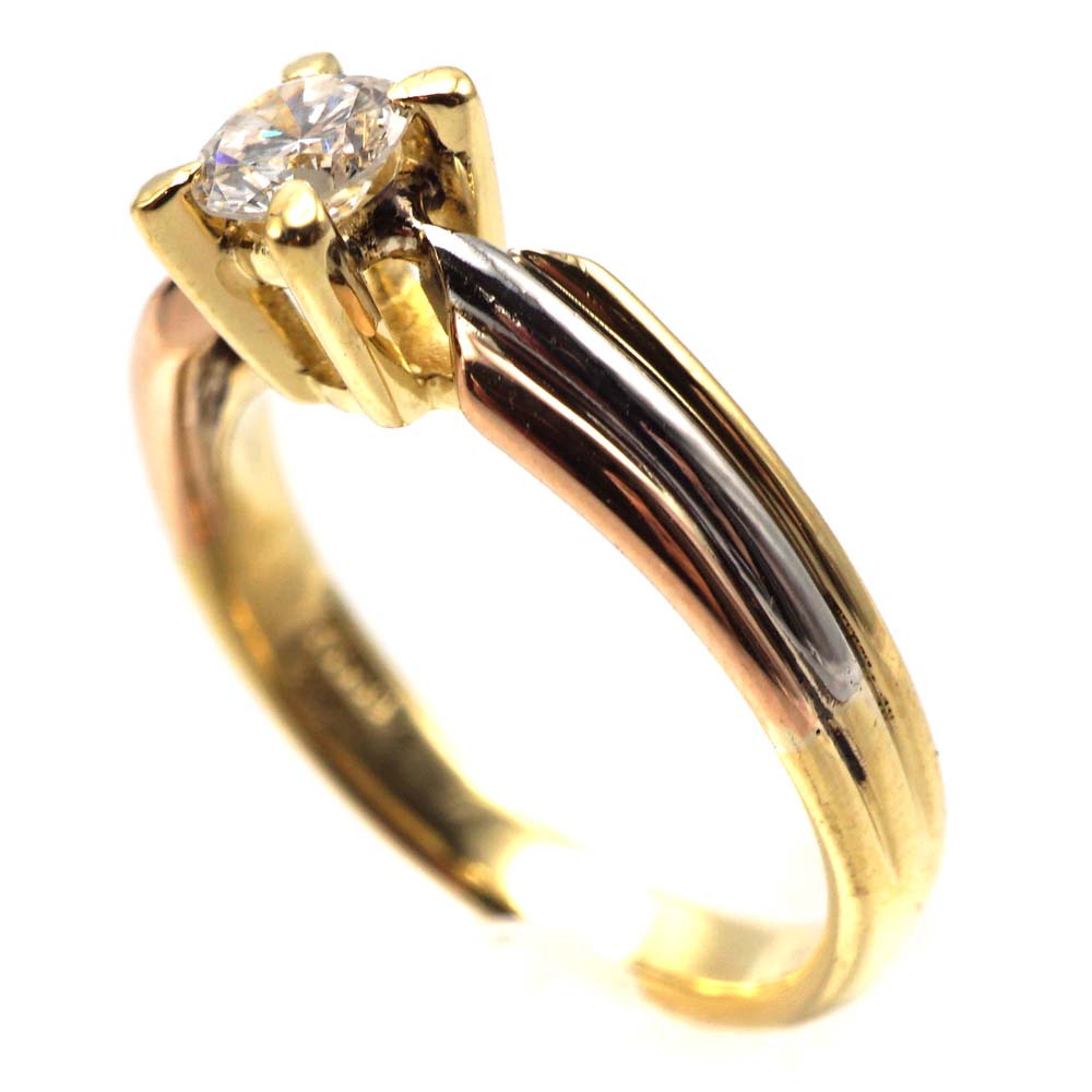 スリーカラーがオシャレな地金にダイヤモンドが輝くお品です。