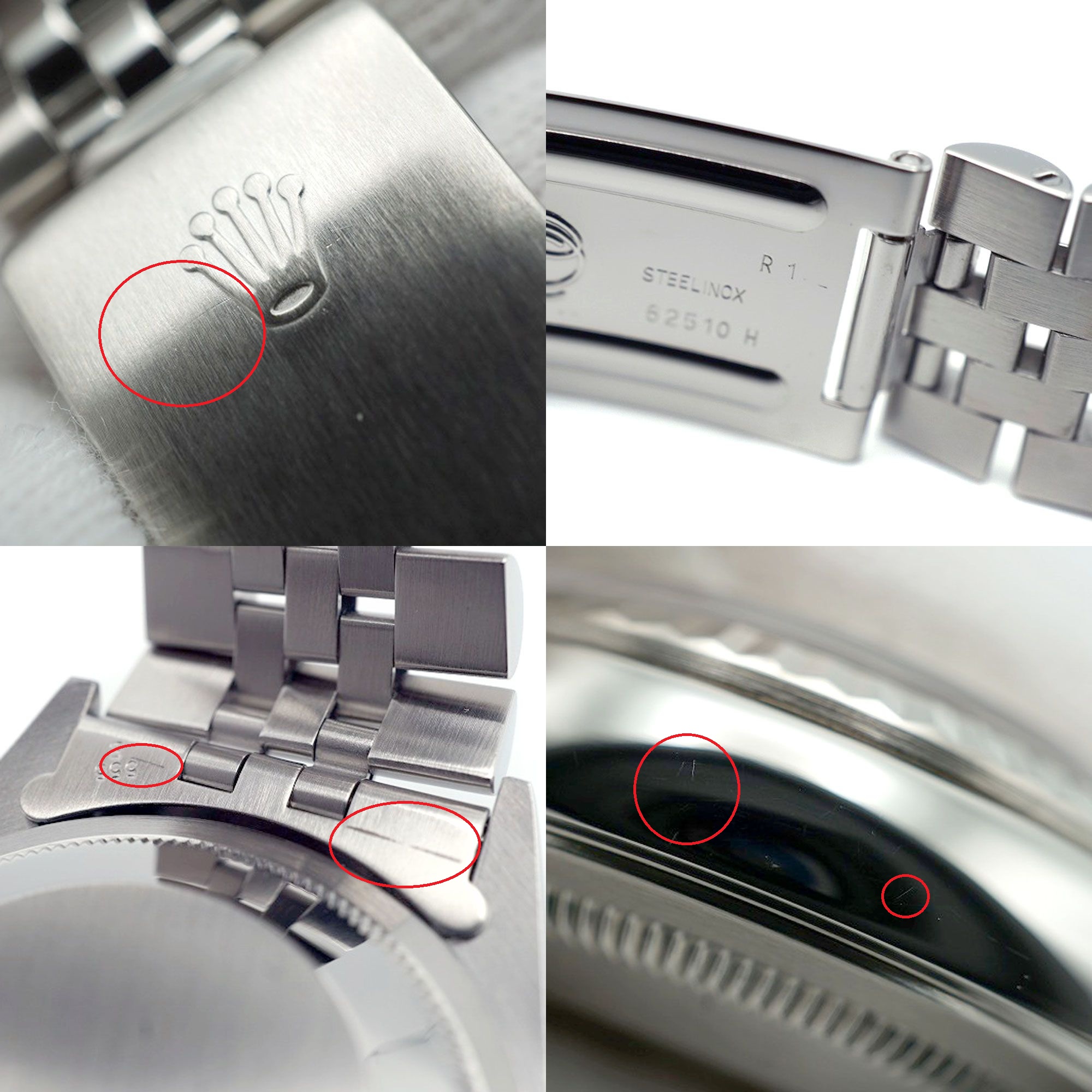| 商品状態 | ※文字盤がヤケによりシャンパンゴールド系のお色味に変色しております。 ■ベゼルにキズ、打痕がございます。 ■ガラスフチにわずかな汚れがございます。 ■ケースに小傷や線傷がございます。 ■ブレスに伸びが見受けられます。 ■店頭でも販売中のため画像にない傷が付く場合が御座いますのでご了承下さいませ。 |