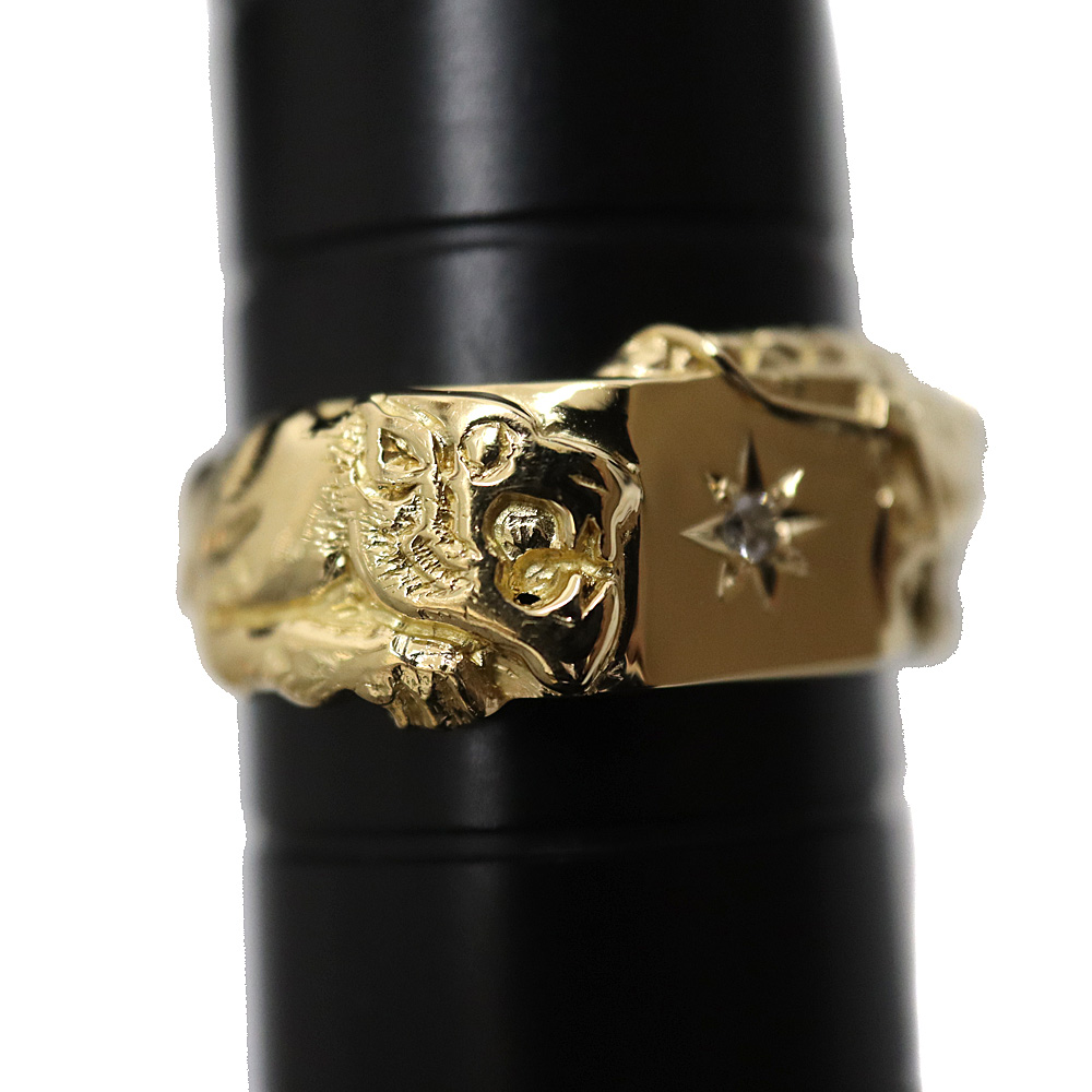 中央のダイヤモンドの両サイドに虎と龍がデザインされた、 迫力あるリングになっています。 この機会に是非いかがでしょうか。