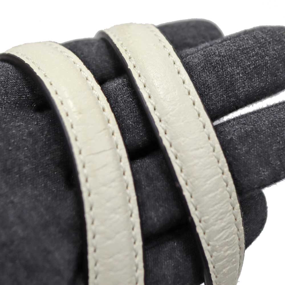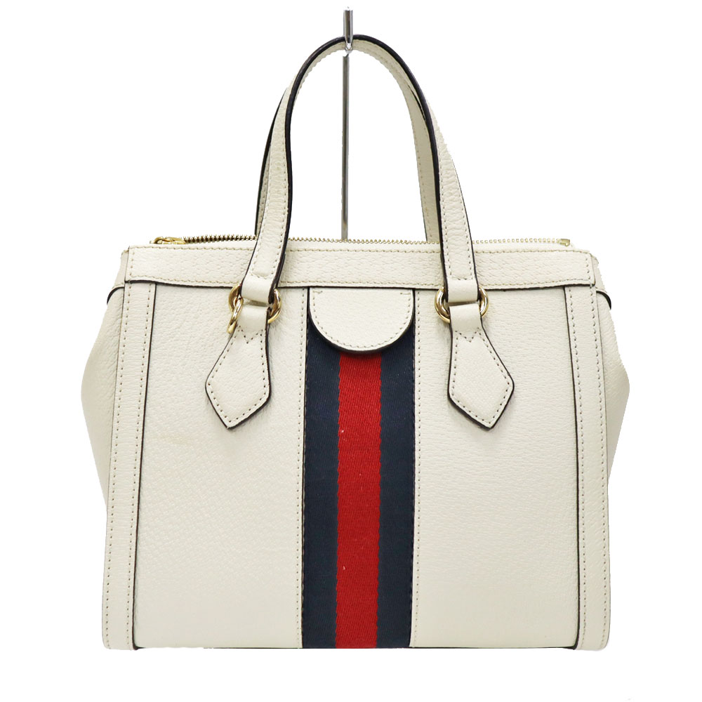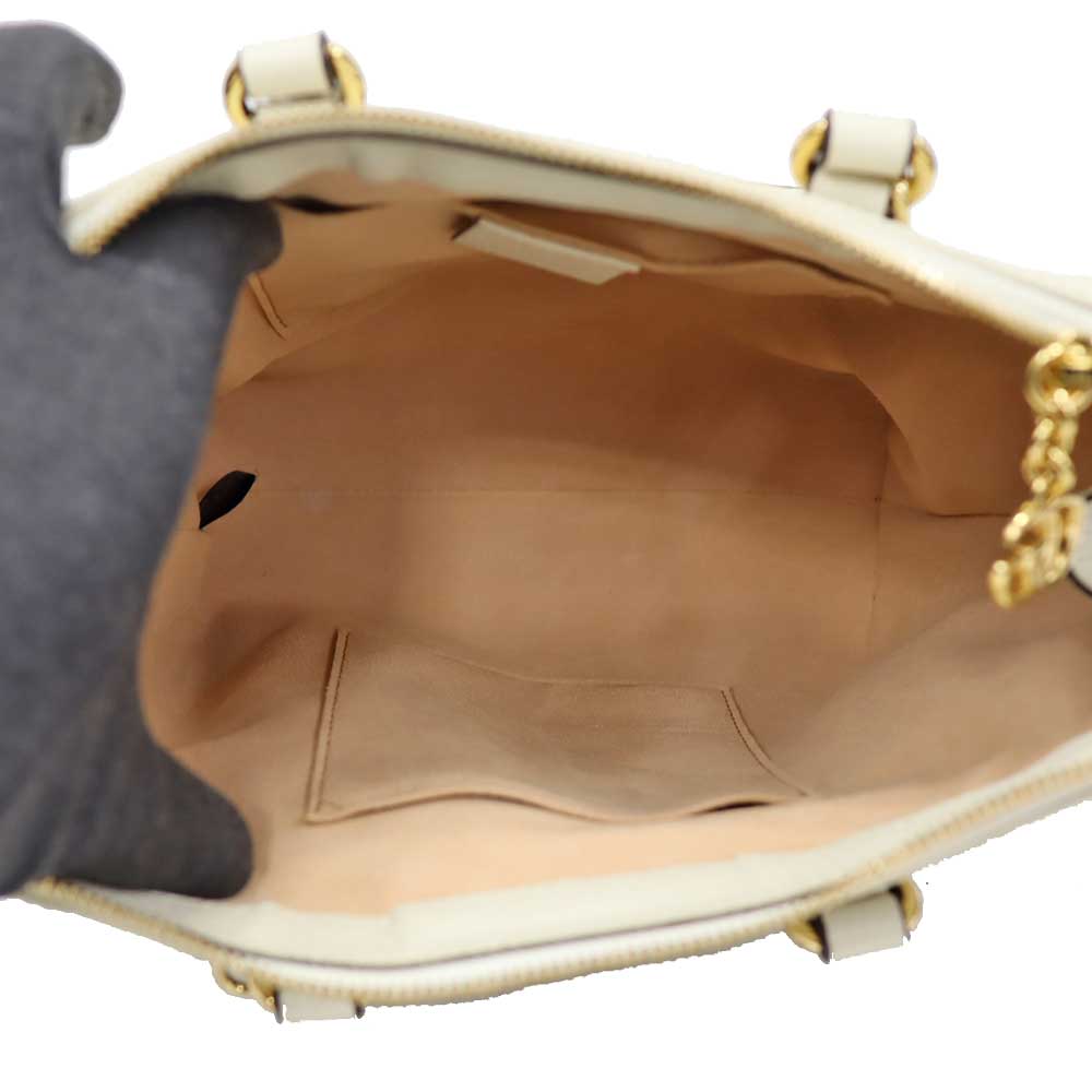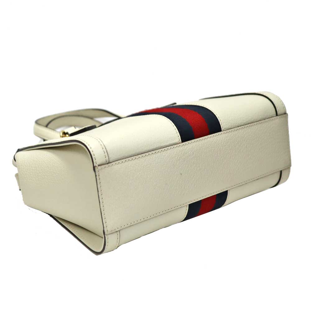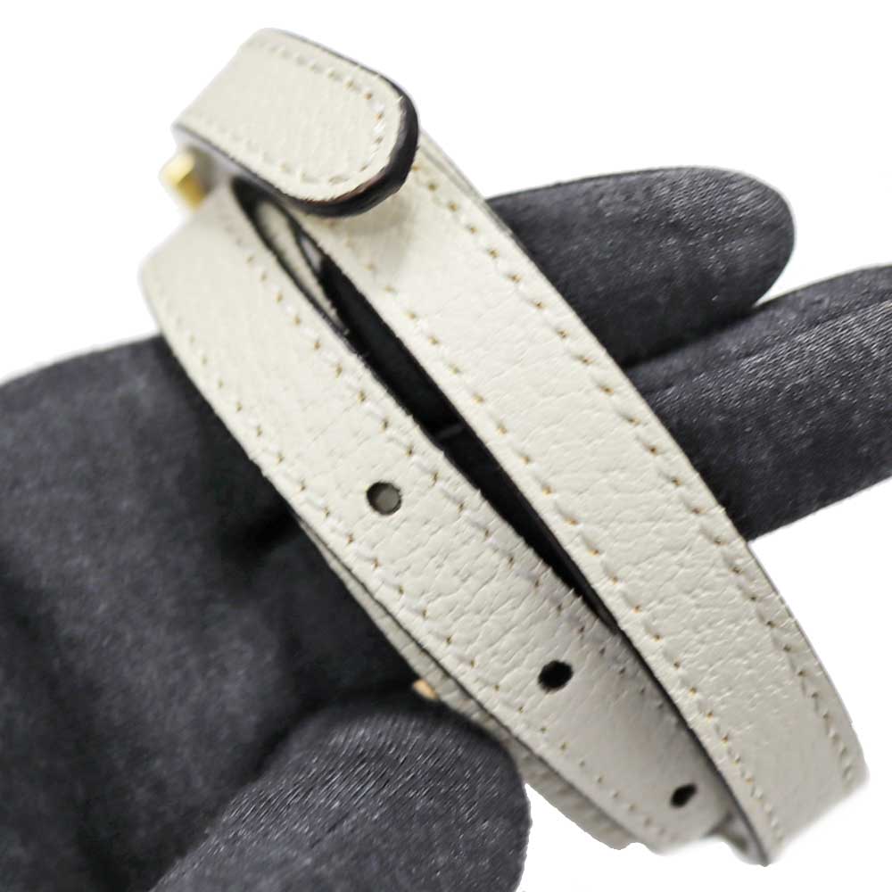 上質なホワイトレザーに、ネイビー×レッドの縦ラインが映え、フロントに配されたGGロゴがブランドらしい存在感を演出しています。 程よいサイズ感で収納力もあり、デイリーからお出かけまで幅広いシーンで活躍するアイテムです。 ショルダーストラップ付きのため、ハンドバッグとしてはもちろん、ショルダーバッグとしてもコーディネートやシーンに合わせて使い分けが可能です。