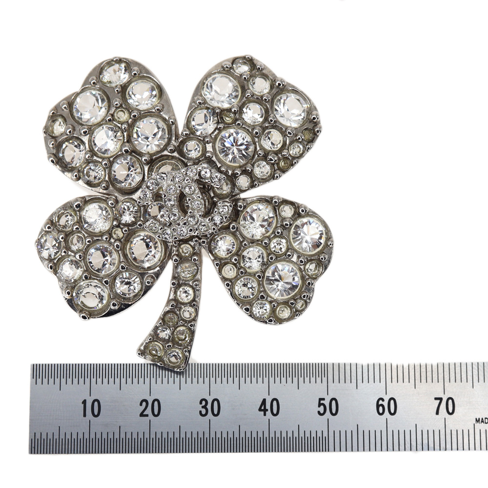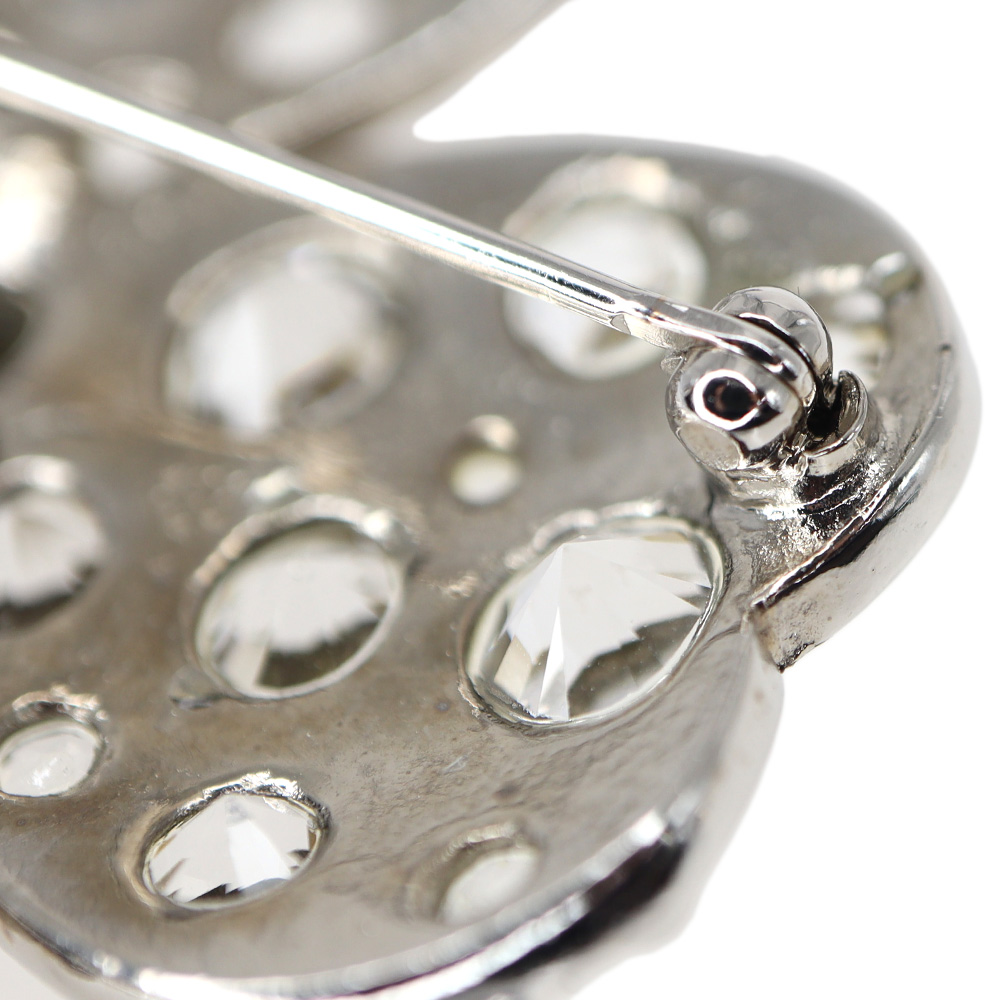 クローバーデザインの中央にココマークがデザインされたブローチです。 シルバーカラーにラインストーンが埋め尽くされたアイテムとなっており華やかかつ可愛らしいアイテムとなっております。 お探しの方はぜひこの機会にいかがでしょうか。