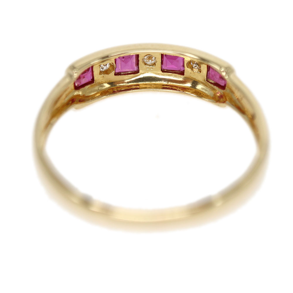 一列にセッティングされたルビーが美しい指輪です。 ルビーの間にダイヤモンドも施されており、より華やかさがあります。