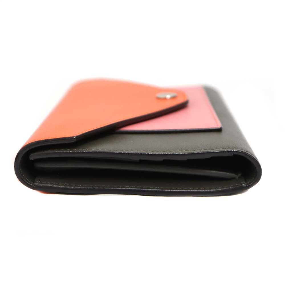 セリーヌらしい洗練されたデザインが魅力のトリフォールド(三つ折り)財布です。 上質なレザーを使用し、オレンジ×ピンク×ブラウンのコントラストが目を惹く、遊び心とエレガンスを兼ね備えたアイテム。 フロントにはさりげなく「CELINE PARIS」のロゴがあしらわれ、ブランドの上品さを主張してくれます。 お探しの方はこの機会に是非いかがでしょうか。