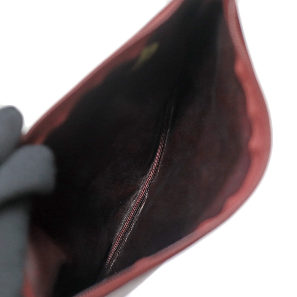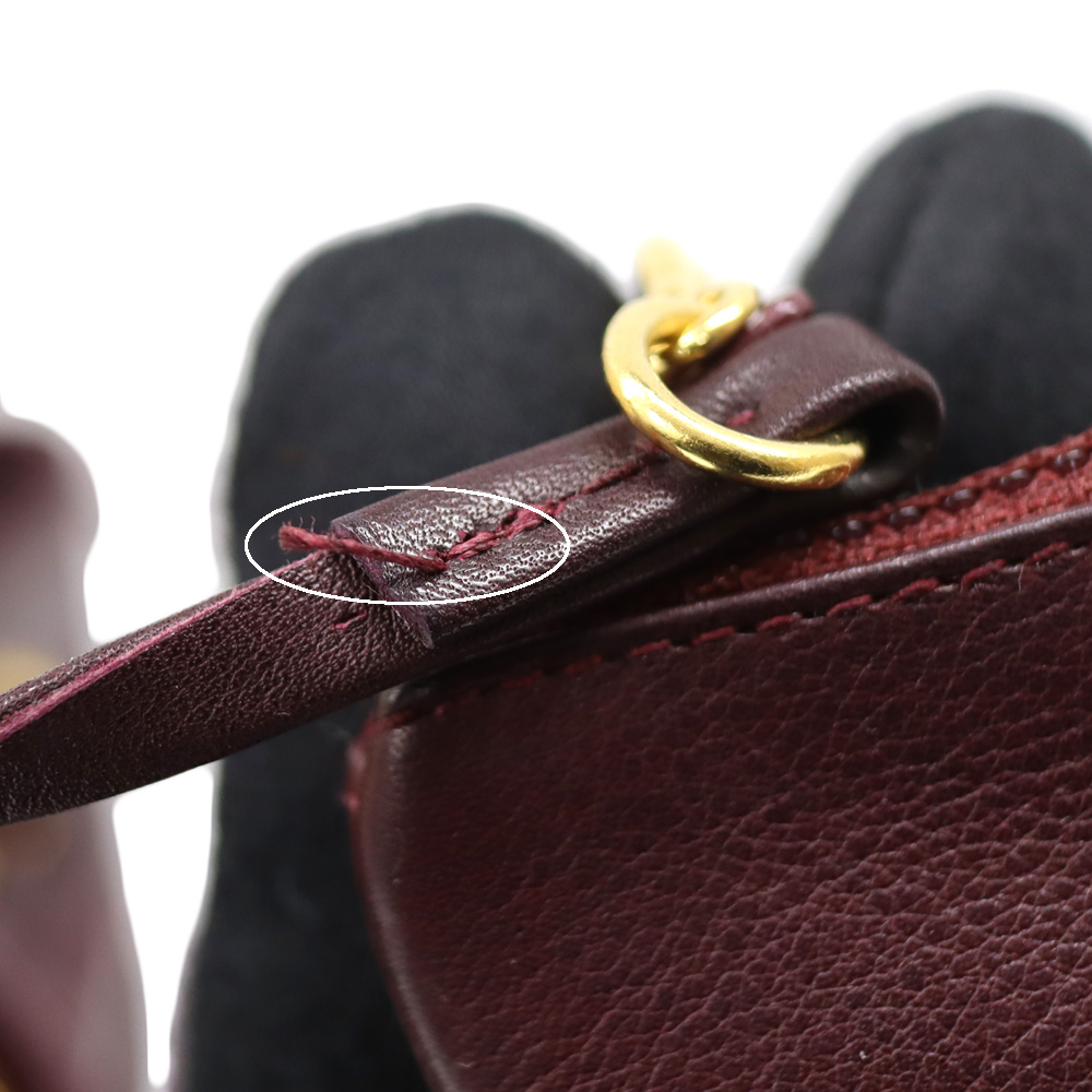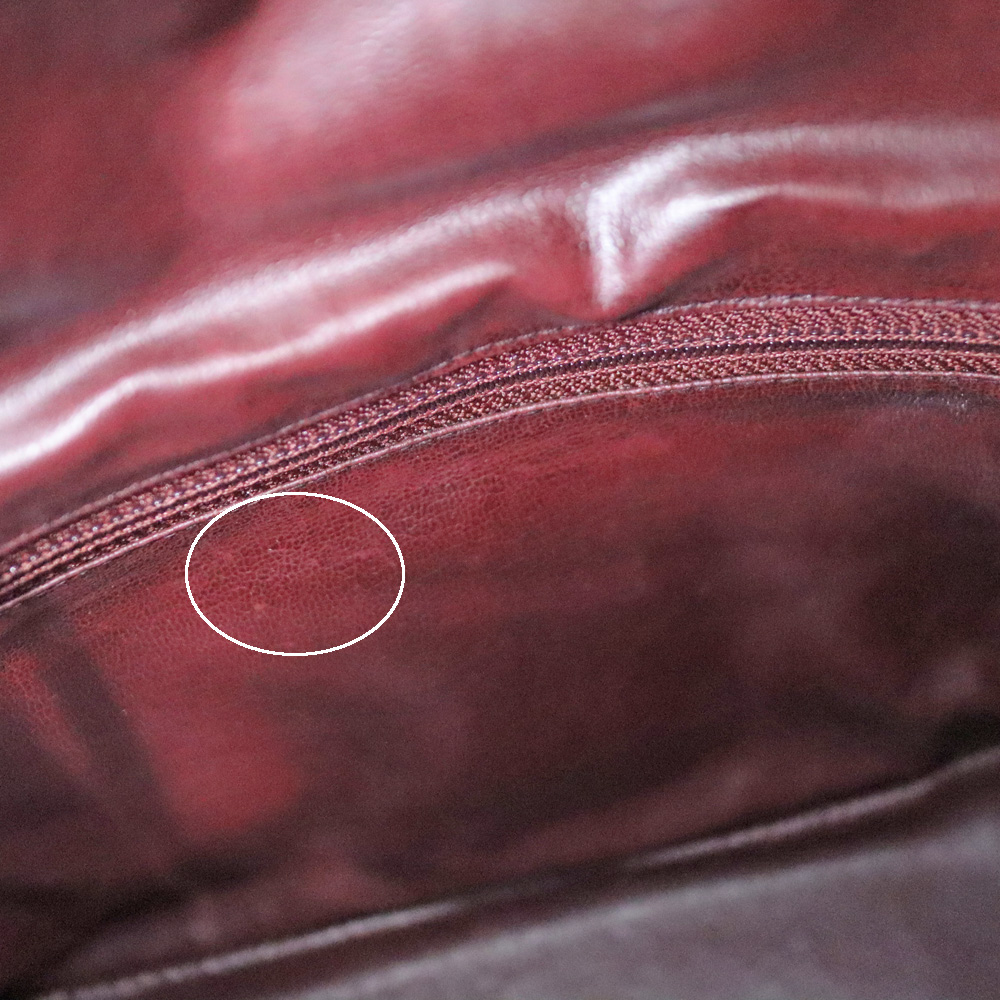 | 商品状態 | ■表面数か所のスレ ■金具の小傷、くすみ ■ポーチの変形 ■型崩れ ■内側数か所の黒ずみ、小傷 ■一部ステッチの糸飛び ■内外問わず小さな点状の汚れ |
