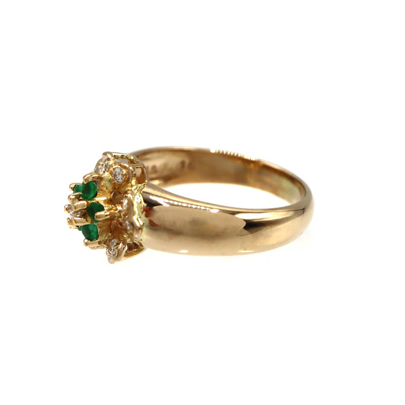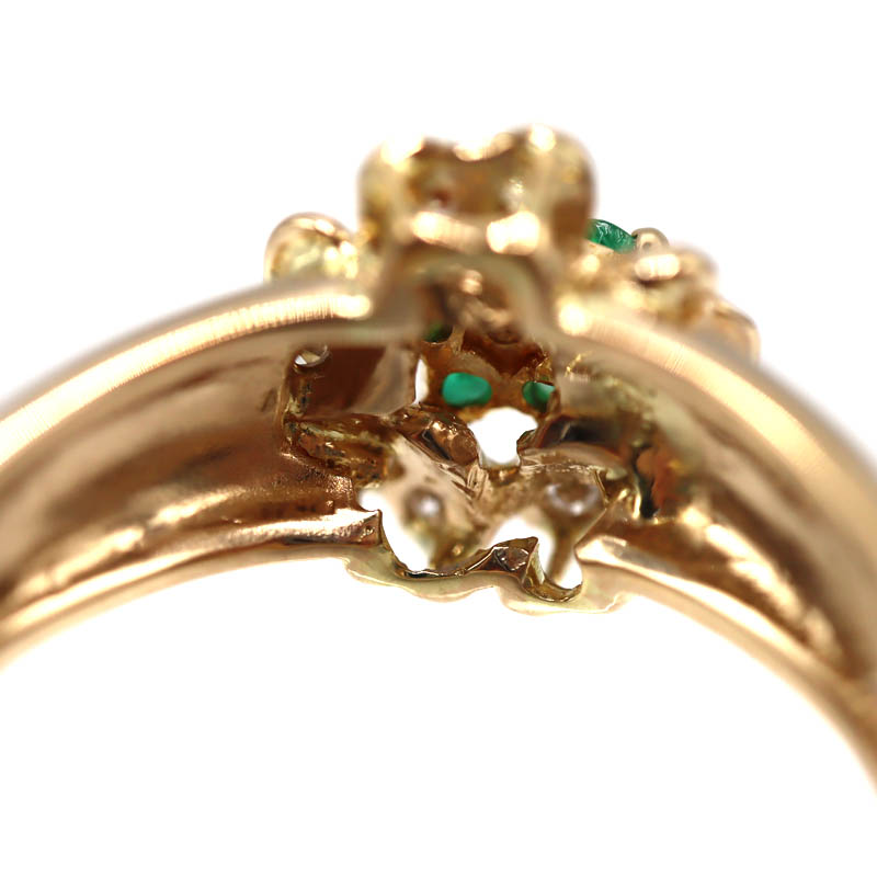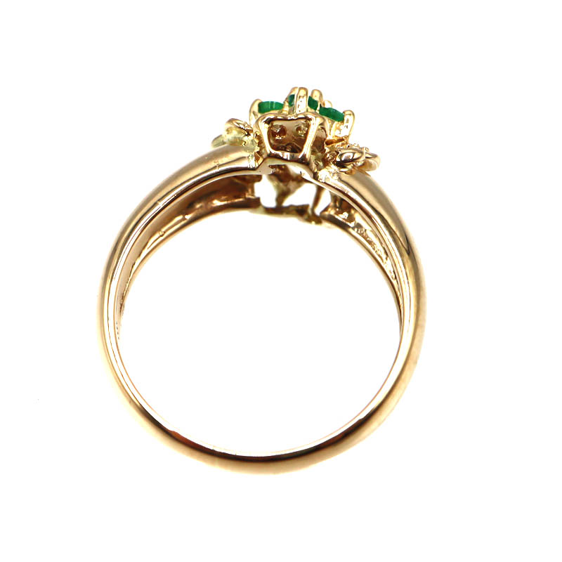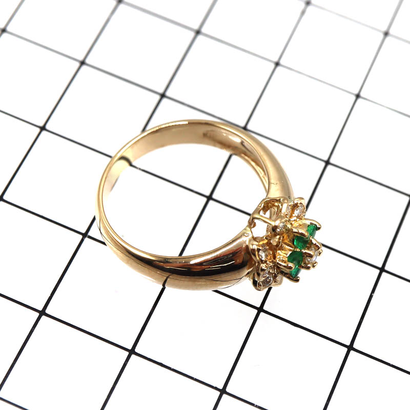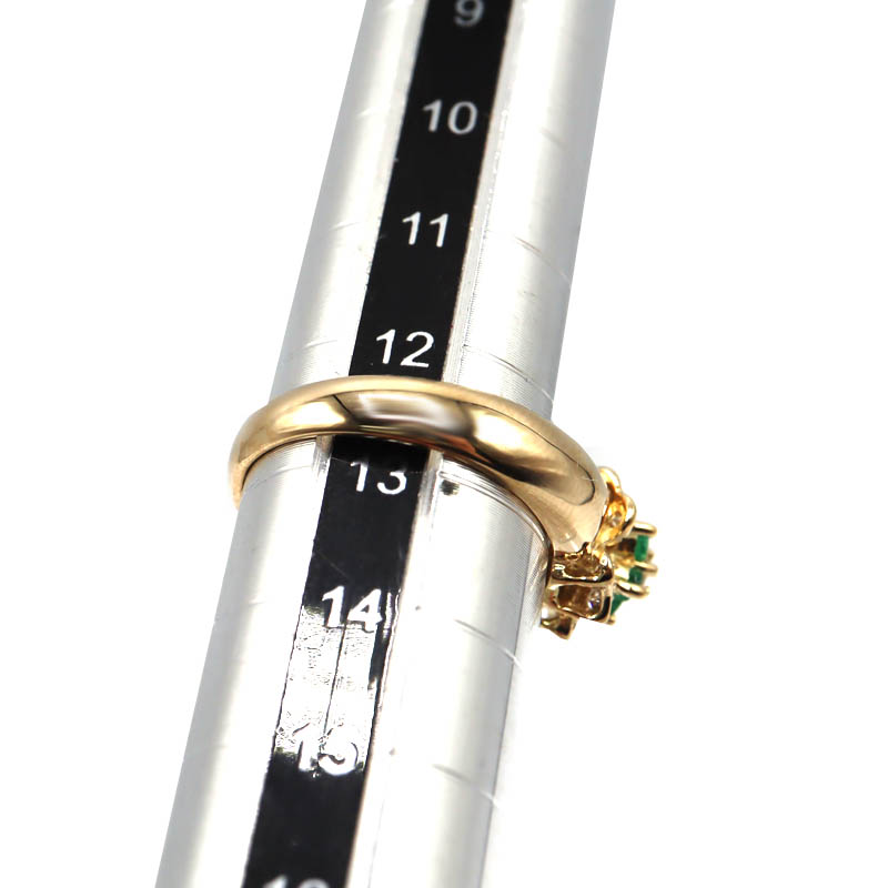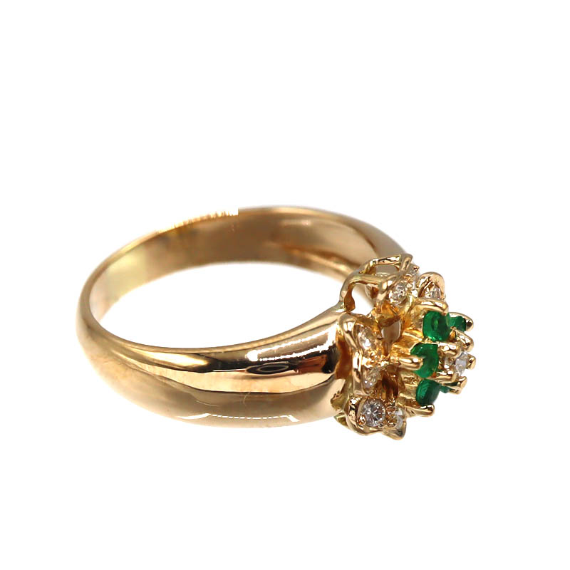 鮮やかなグリーンが美しいエメラルド0.18ctと、ダイヤモンド0.19ctをあしらったK18リングです。