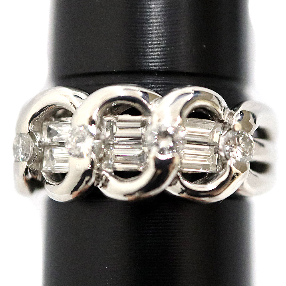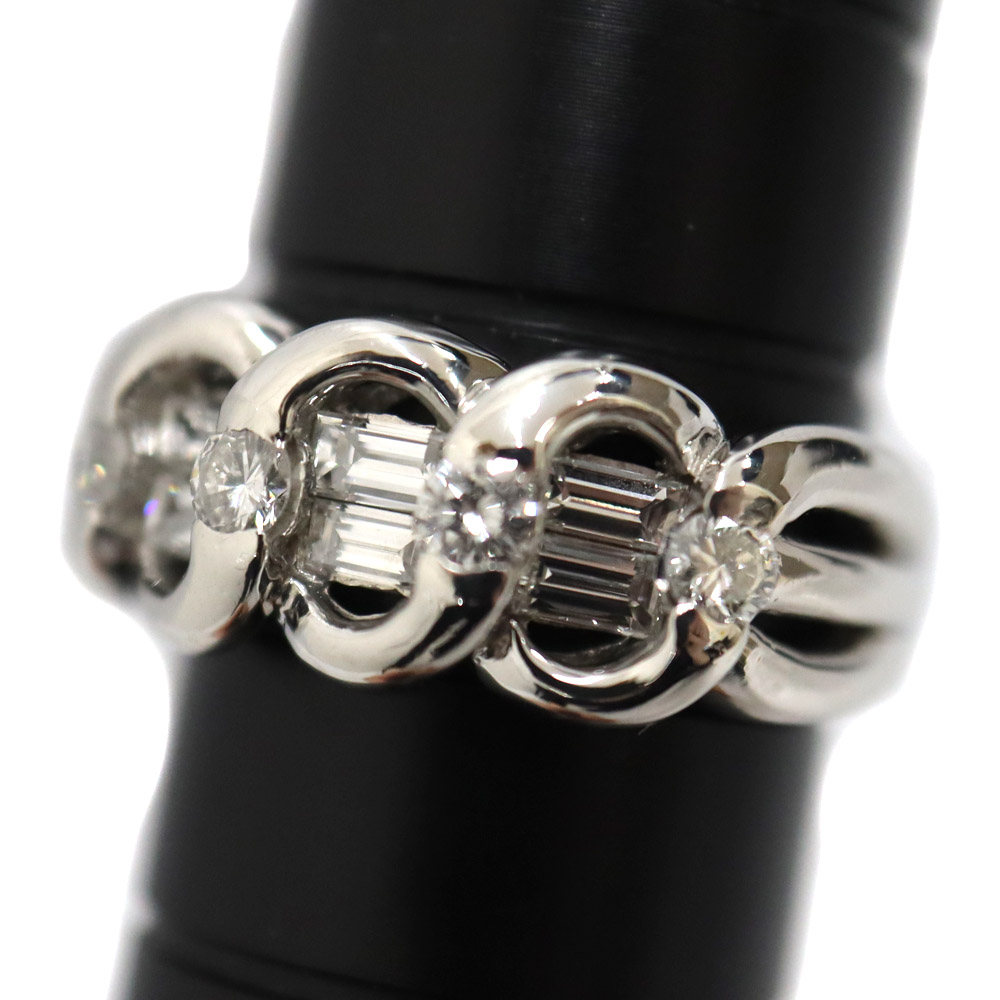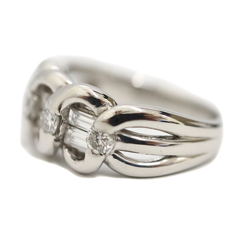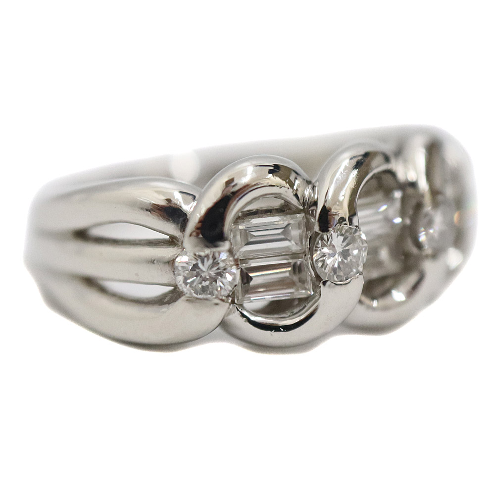 バケットカットのダイヤがセッティングされていることで 豪華さがアップした指輪になっております。 この機会にぜひいかがでしょうか。