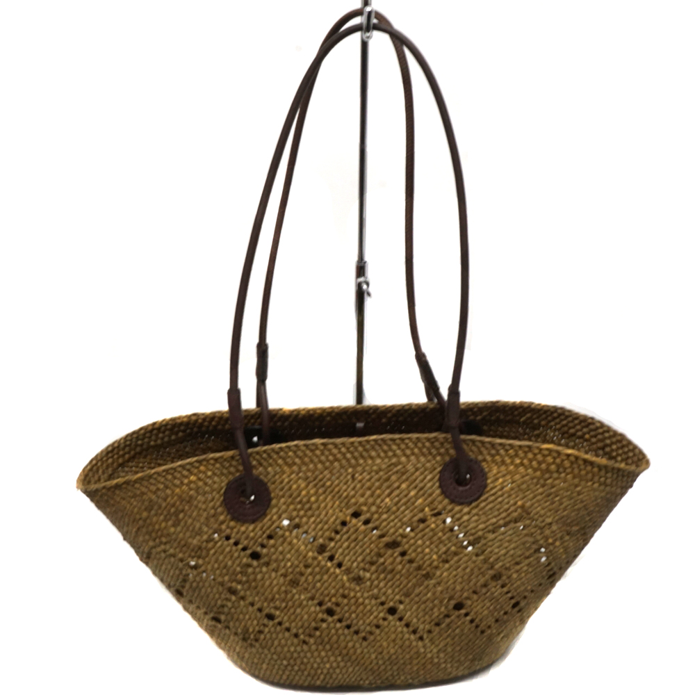 クラシックな手織りのボディに、カーフスキンのチューブラーストラップ、刺繍入りカーフスキンのアナグラムをあしらった伝統的なバスケットバッグです。