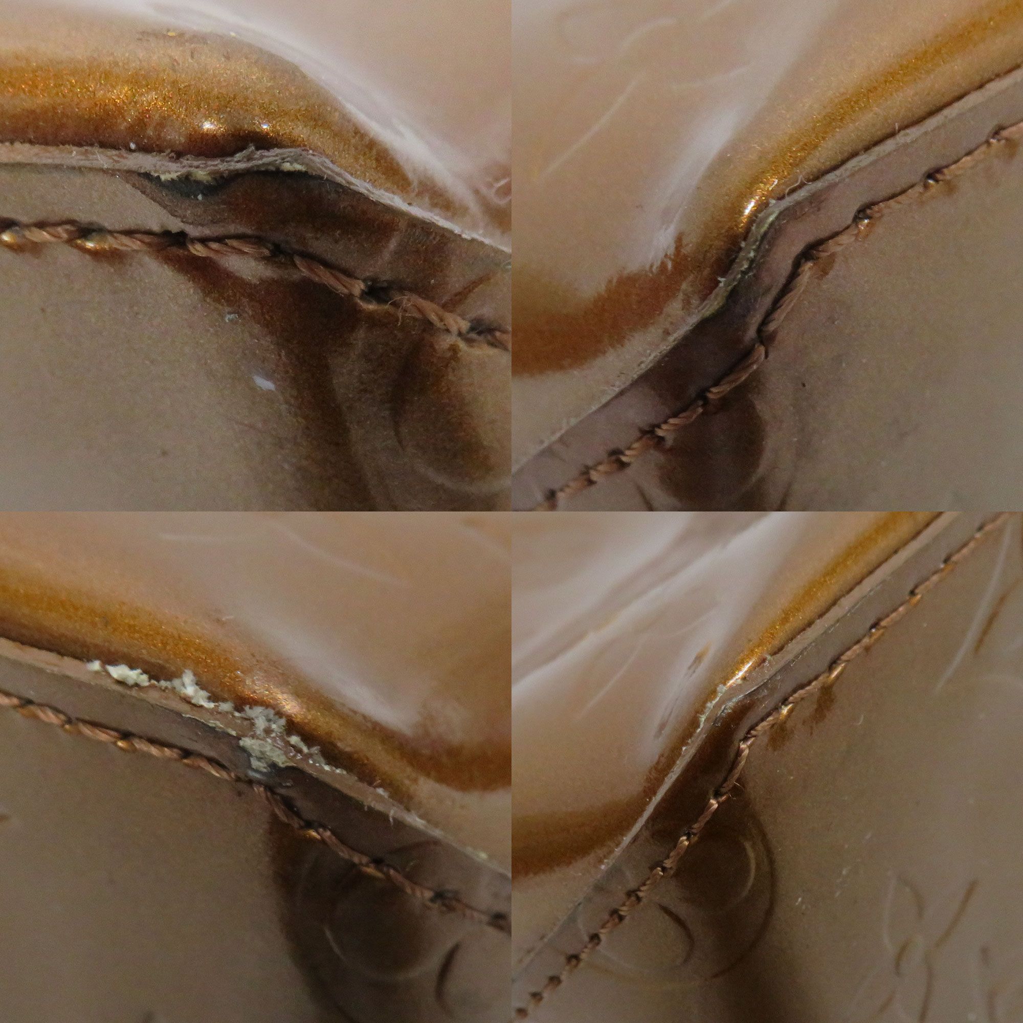 | 商品状態 | ■型崩れ ■表面スレ、剥がれ ■角スレあり ■内側に汚れ箇所あり ■内側パテントレザー部分に色移りあり ■ヌメ革に若干の汚れ・ヤケ・シミ・スレあり ■店頭でも販売しているため、画像に無いキズ等が付く可能性がありますので予めご了承ください。 |