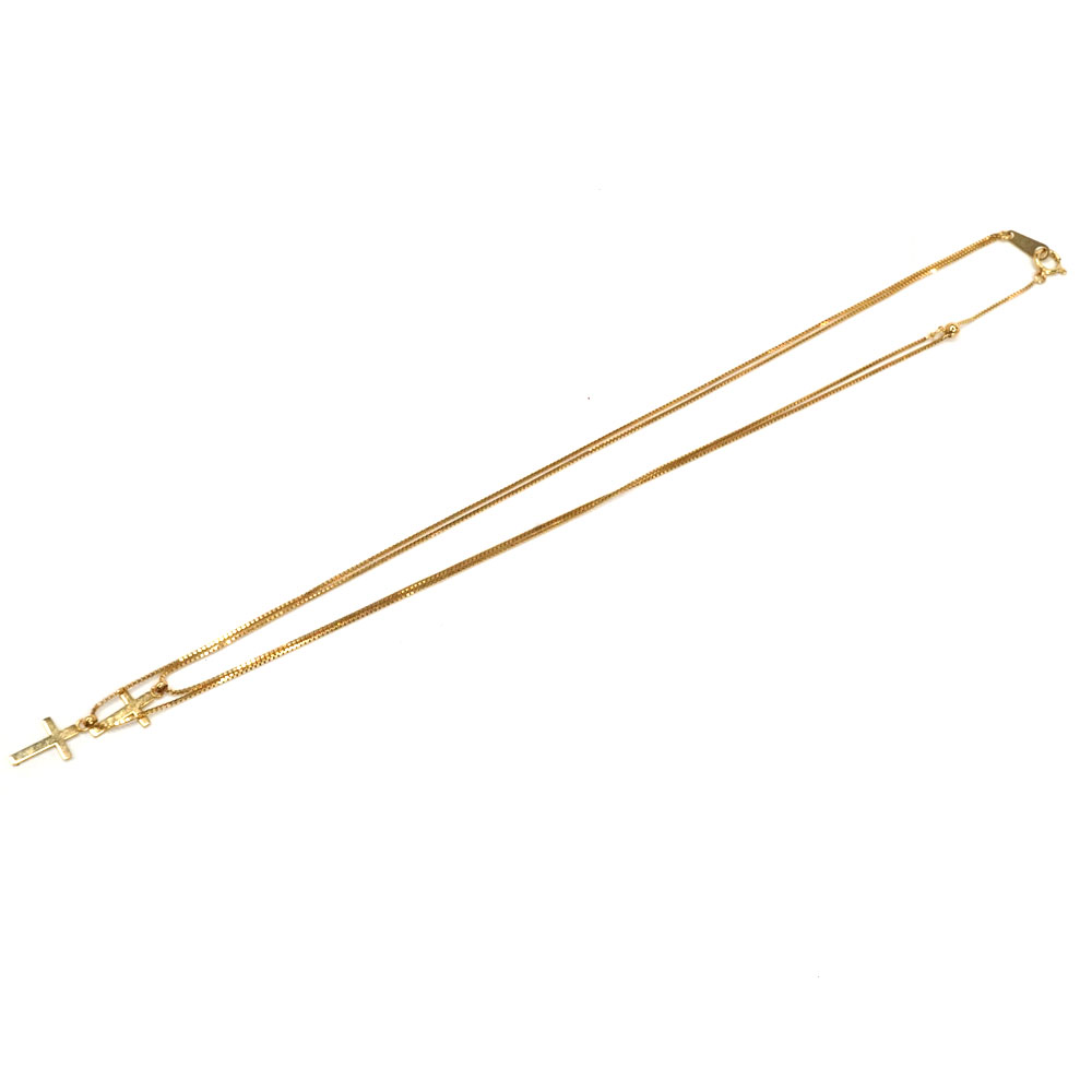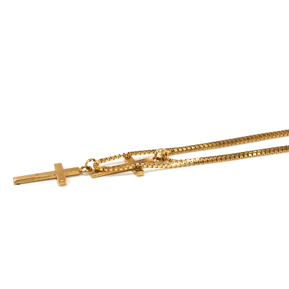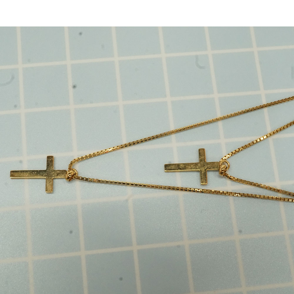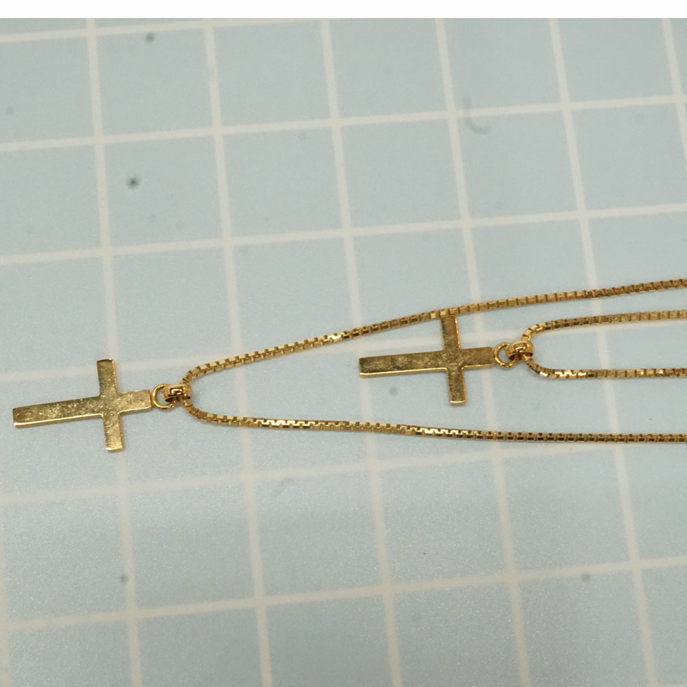 クロスのデザインが二連に連なったデザインネックレスです。 首元のアクセントにいかがでしょうか。 ※尚、当サイトの販売金額より店頭での販売金額の方をお安く設定させて頂いております。予め、ご了承下さいませ。(一部セール品等除く) |
