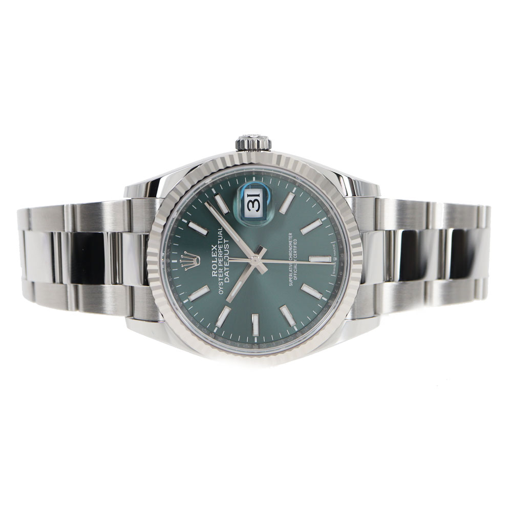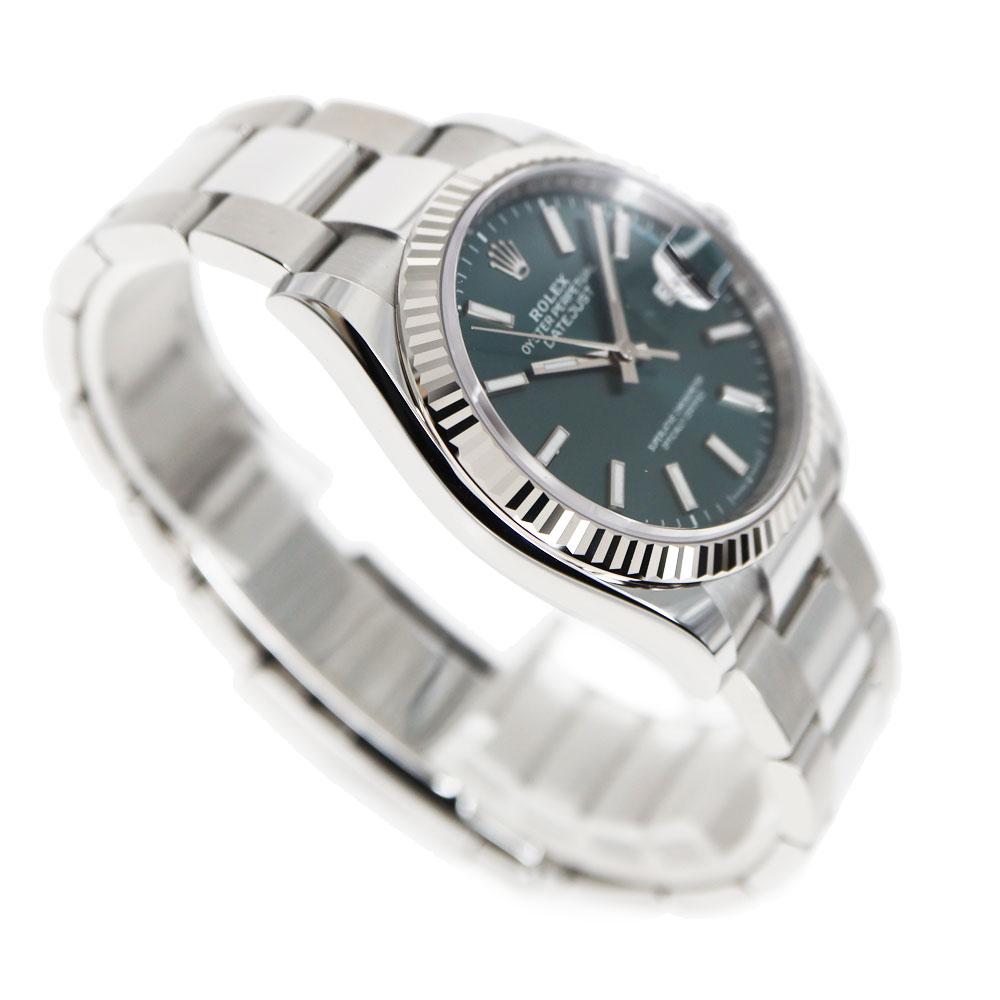 | 商品説明 | ROLEX【ロレックス】 126234 デイトジャスト36 紹介です。 ロレックスの中でも人気の高いデイトジャスト。 目を引くミントグリーンに美しいサンレイ仕上げが映えるあらゆるシーンで華やかかつシンプルに輝く仕様のデイトジャスト。 1945年に登場してから流行に左右されないデザインで愛され続けているモデルの現行モデルです。 重量感もあり着け心地も抜群です。