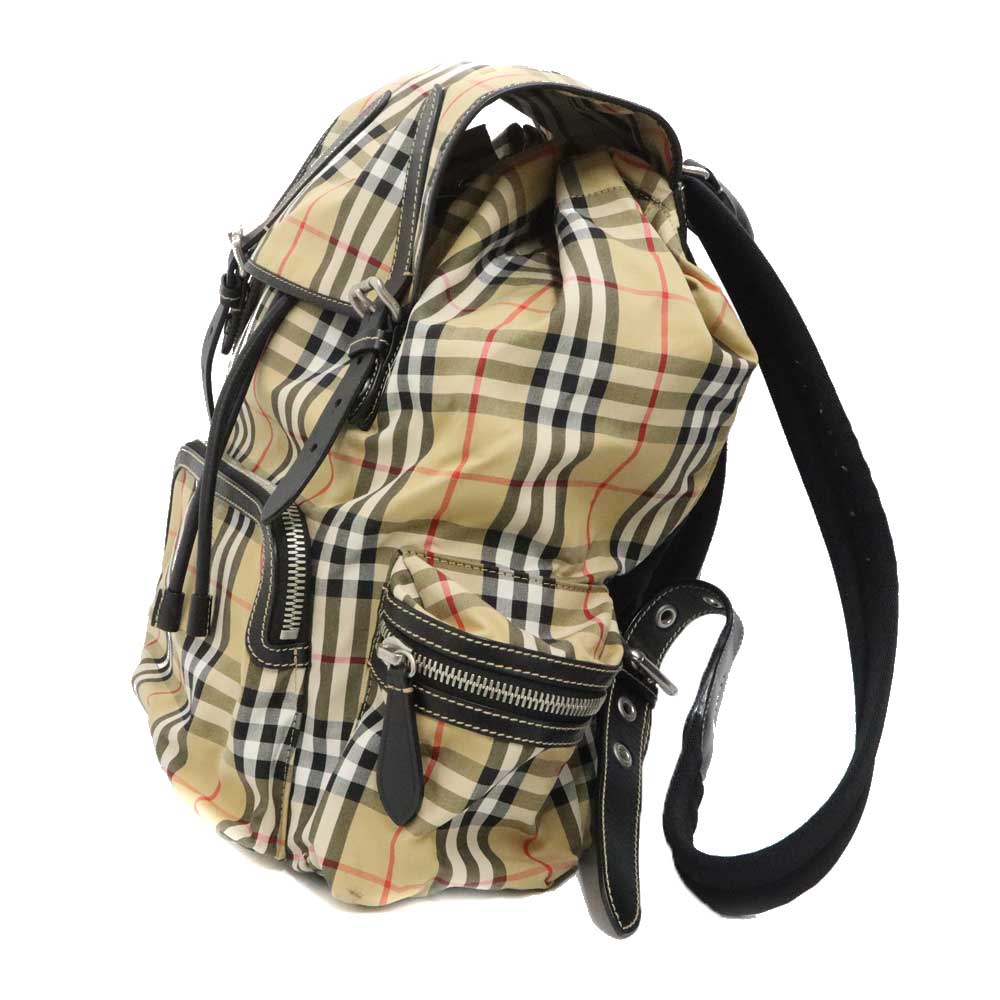 チェック柄の素材で作られたバーバリーらしいデザインが詰まったバックパックとなります。 大容量で通学用として、小旅行用としても活躍するサイズ感となります。 この機会に是非いかがでしょうか。