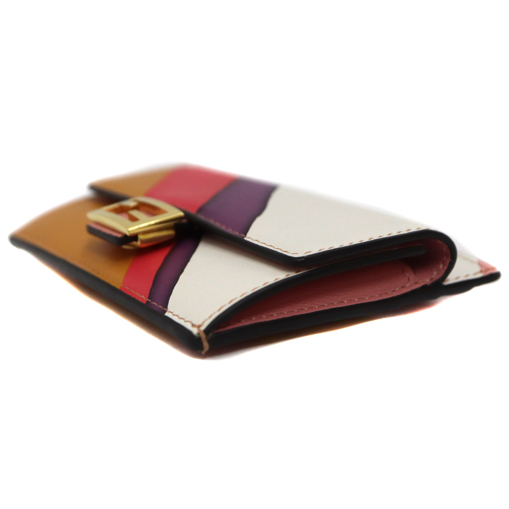 正面のFFロゴ金具が特徴的でカラフルな色合いが目を惹きます。 お札の収納は難しいのでカードをメインで持ち歩く方におすすめです。 ぜひいかがでしょうか。