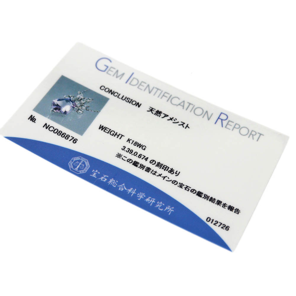 | 素材 | K18WG【18金ホワイトゴールド】 アメシスト:3.39ct ダイヤモンド:0.74ct |