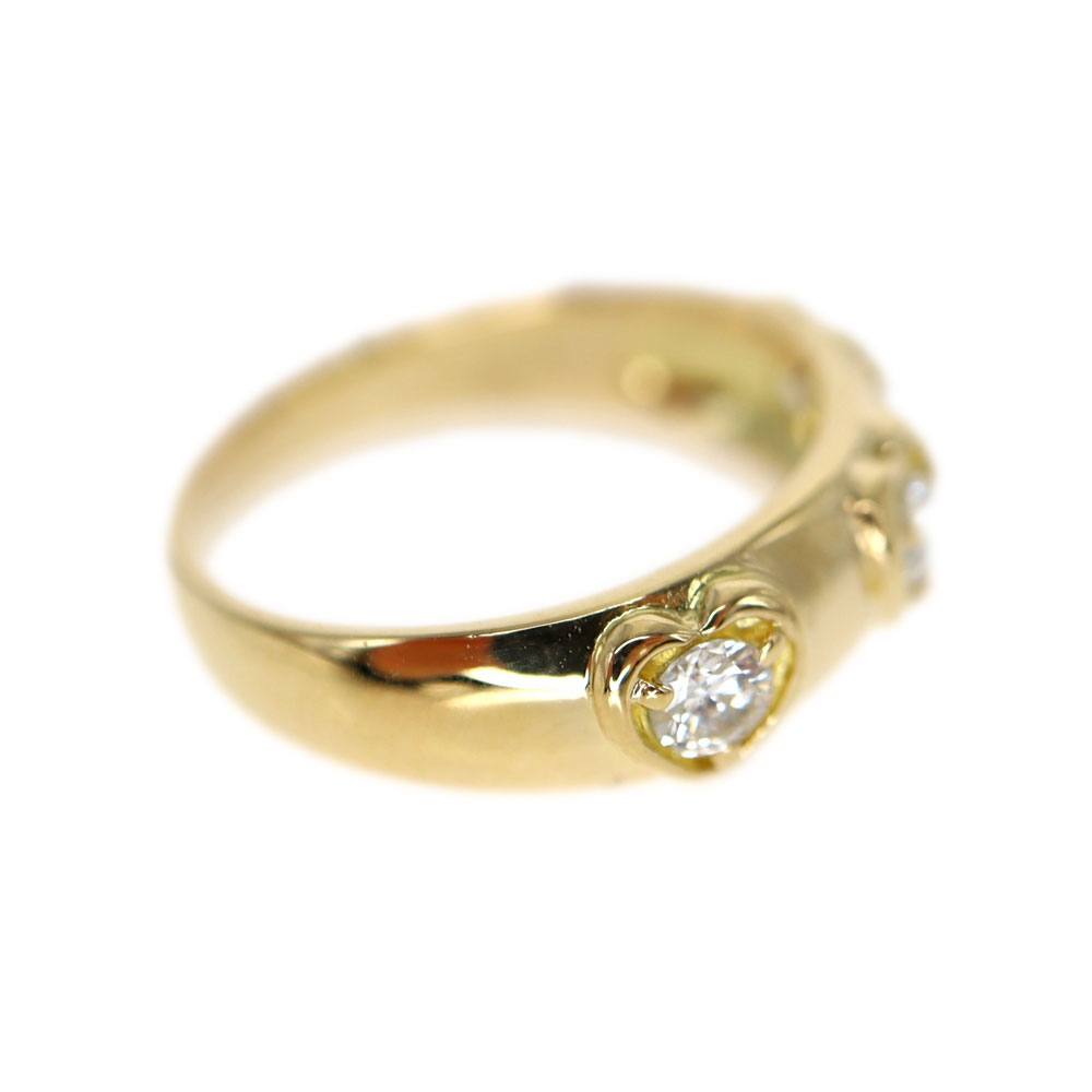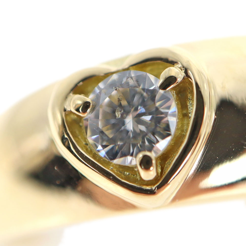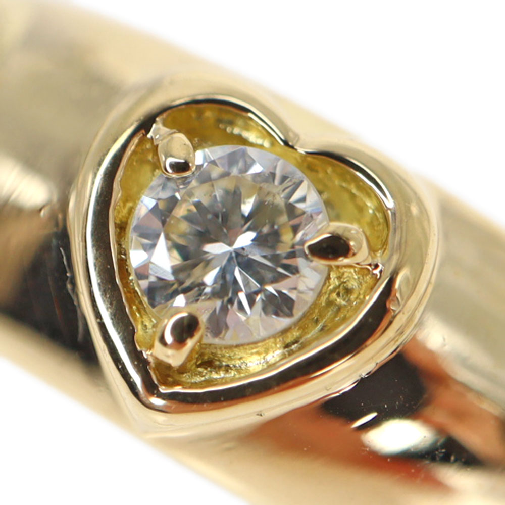 18金のリングに、ダイヤモンドがセッティングされた指輪です。 ダイヤの周りがハートにデザインされているので可愛らしいアクセントになっています。 お手持ちのリングと合わせて着けてもオシャレに楽しめます。