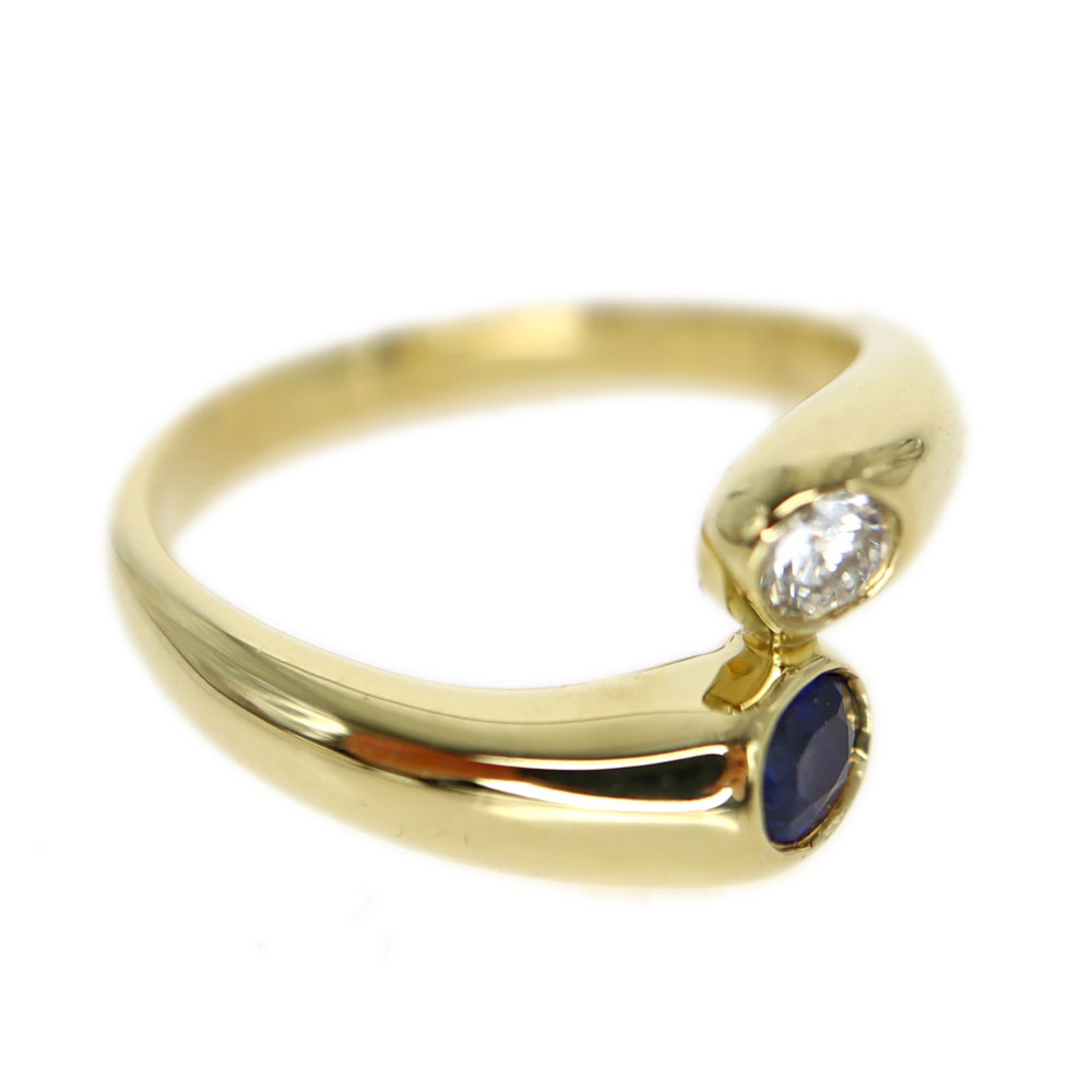 煌びやかにセットされたダイヤモンドがサファイアの美しさを引き立てている指輪です。 サファイアとダイヤモンドが一粒ずつセッティングされたリングはシンプルながらも洗礼された上品さがあります。