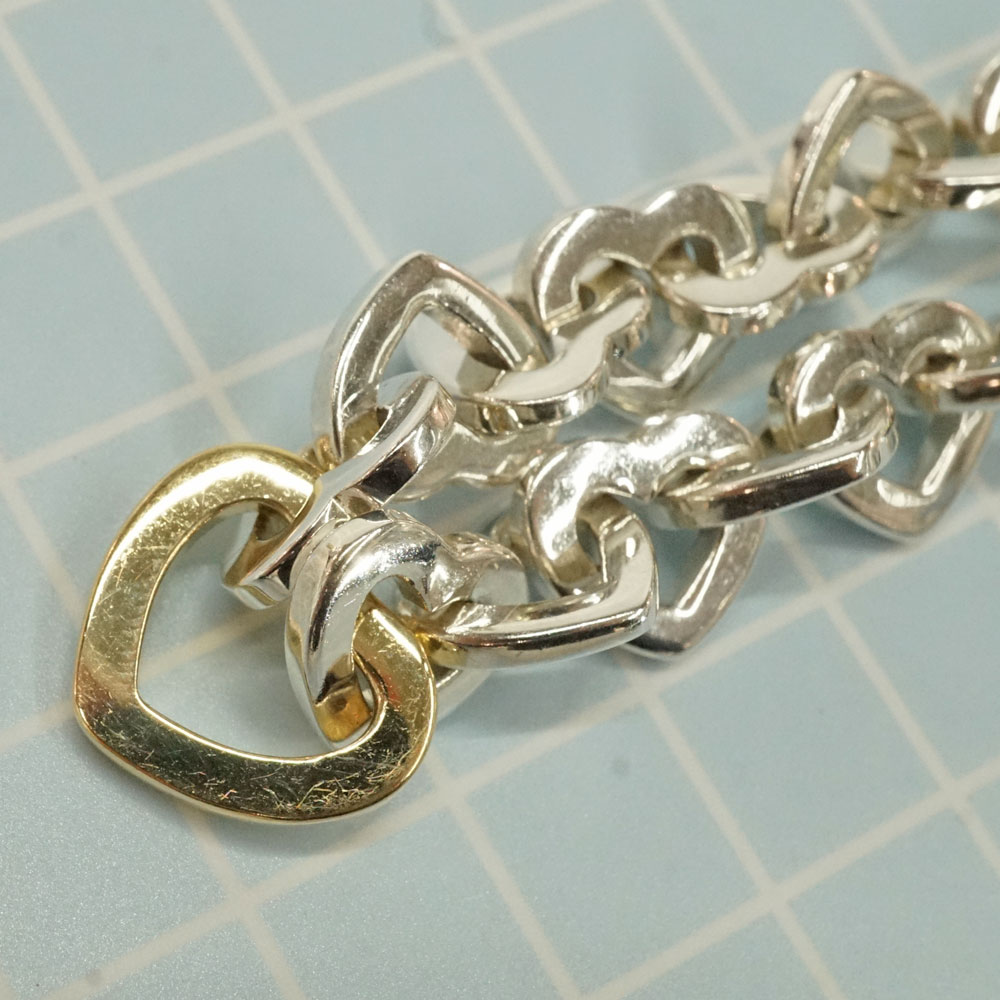 シルバー素材とトップのハートがK18素材を組み合わせたネックレスです。 長く使用できプレゼントにもオススメです。