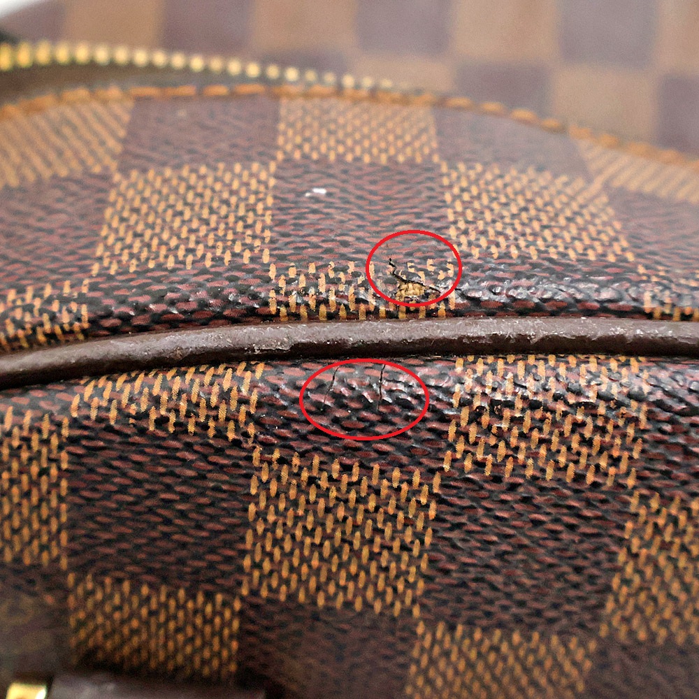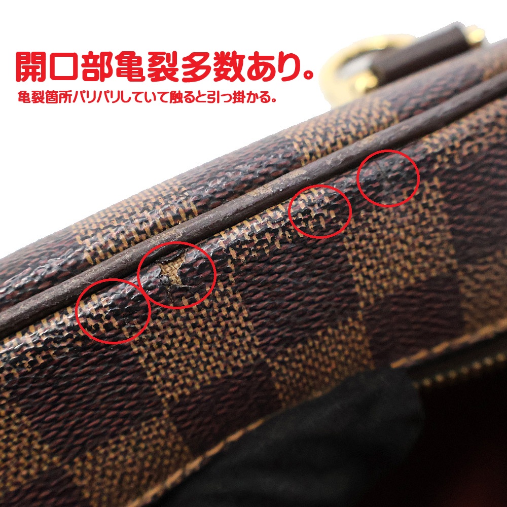| 商品状態 | 【バッグ開口部のヒビ・めくれが強いです。】 ■ハンドル素材めくれあり。 ■バッグ内かなりニオイあり。(良いニオイ) ■開口部ヒビ・めくれがあります。 ■バッグ内汚れ・白くスレ汚れあり。 ■角スレあり。 ■ロゴレザー部分キズ・スレあり。 ■金具黒ずみ・キズあり。 ■バッグ表面所々白いモヤ汚れあり。 ■開閉ファスナーかなりかたいです。 ■型崩れがございます。 ※店頭にて同時販売中の為展示による多少のキズ・汚れは予めご了承ください。 |