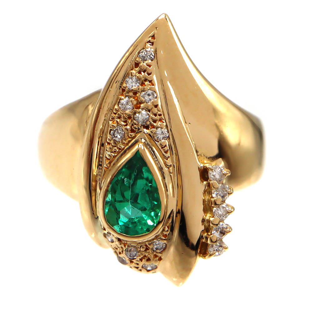 鮮やかなグリーンが美しいエメラルド0.44ctと、ダイヤモンド0.16ctをあしらったK18リングです。
