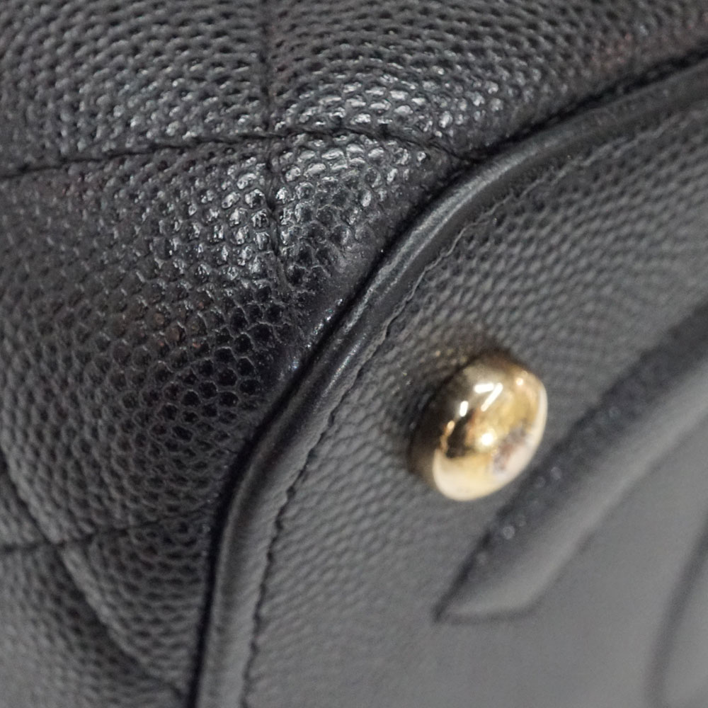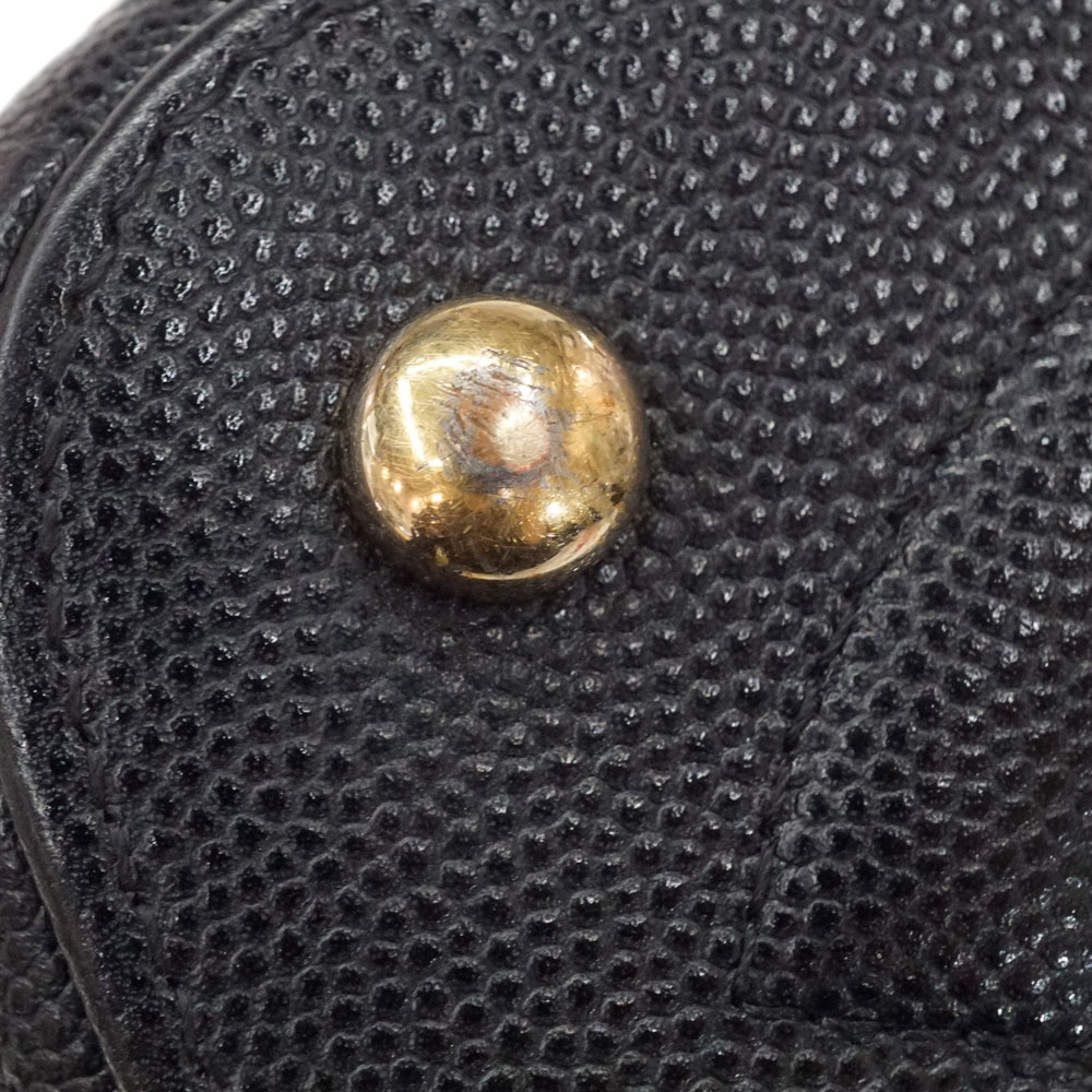 正面のココマークが印象的な可愛らしいお品物です。 シャネルの中でも人気のキャビアスキンの素材とブラック×ゴールドのカラー。 ハンドバッグやコスメポーチとしてお使い頂けます。 お探しの方はこの機会に是非いかがでしょうか。