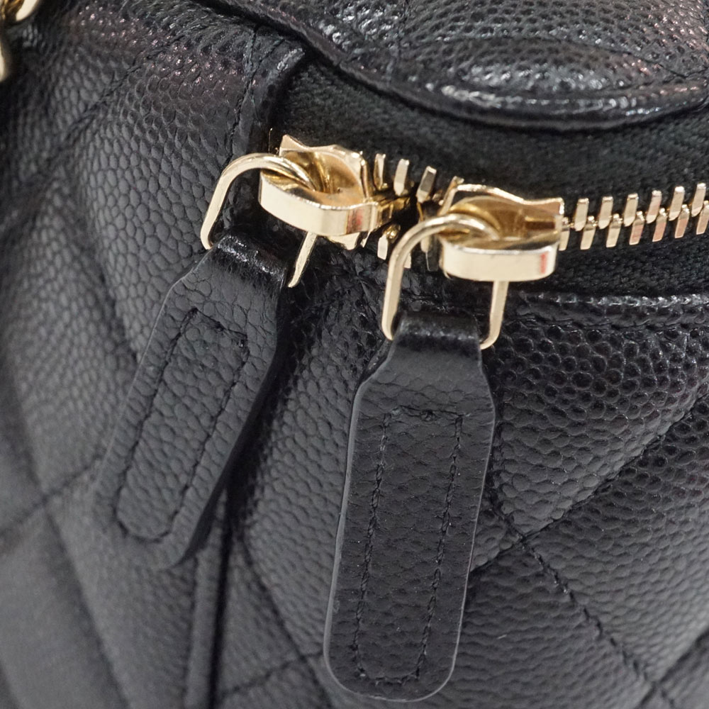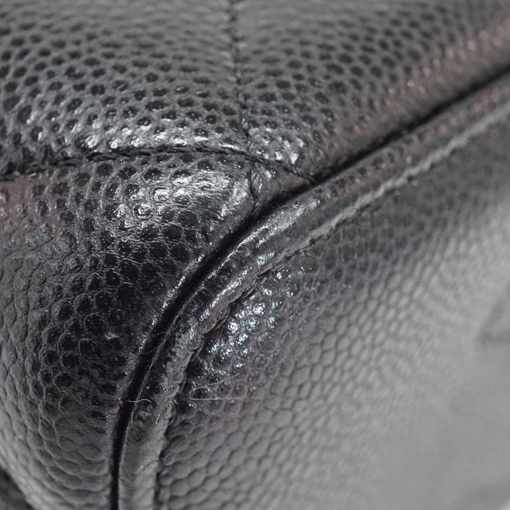 正面のココマークが印象的な可愛らしいお品物です。 シャネルの中でも人気のキャビアスキンの素材とブラック×ゴールドのカラー。 コスメポーチとしてお使い頂けます。 お探しの方はこの機会に是非いかがでしょうか。