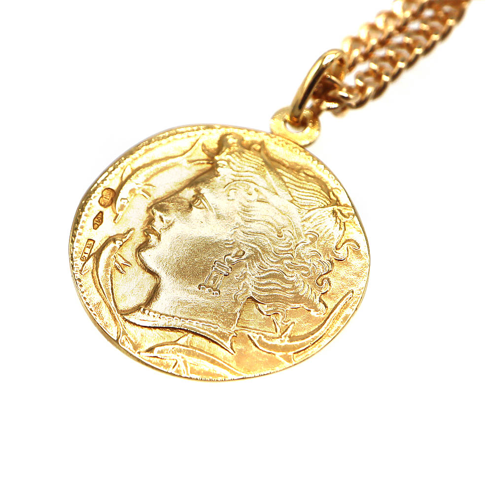 上質なK18(18金)イエローゴールドを使用した、コインモチーフ付きネックレスのご紹介です。