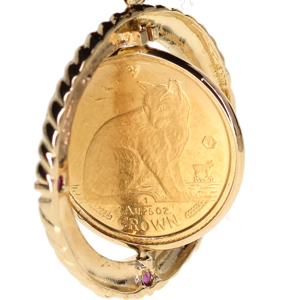 | 商品説明 | K24/K18【24金/18金】マン島キャット1/25ozコイントップルビー付のご紹介です。