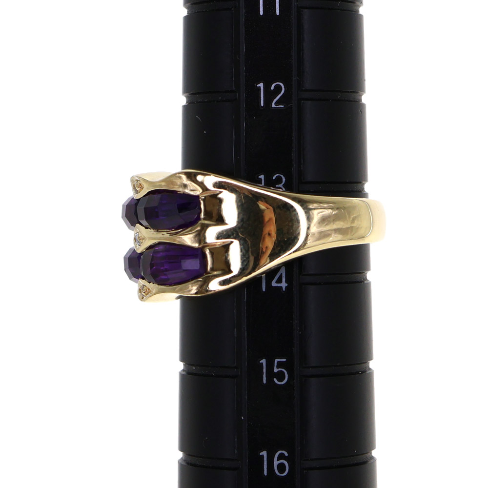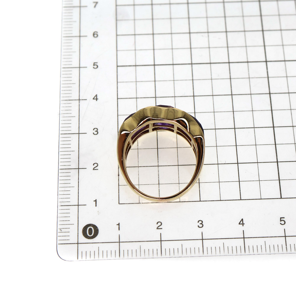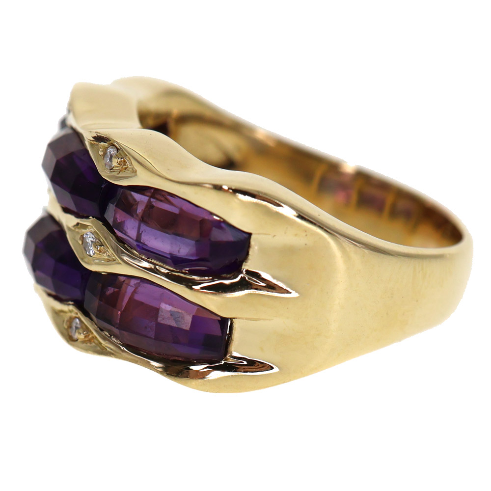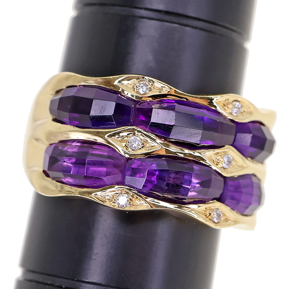 大ぶりのアメシストが大胆なカットでセッティングされたリングです。 お手元を華やかに演出してくれますよ。 この機会に是非いかがでしょうか。