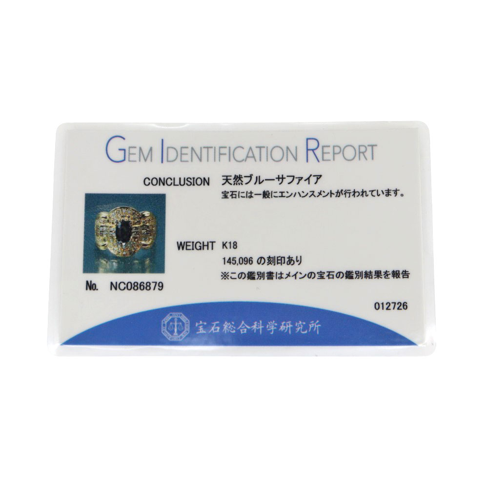 | 重さ | 総重量約:10.0g サファイア:1.45ct ダイヤモンド:0.96ct |