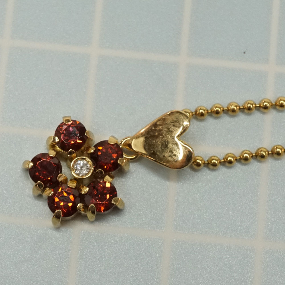 ガーネットとダイヤモンドがセッティングされた、シンプルかつ上品なネックレスです。 お探しの方はこの機会に是非いかがでしょうか。