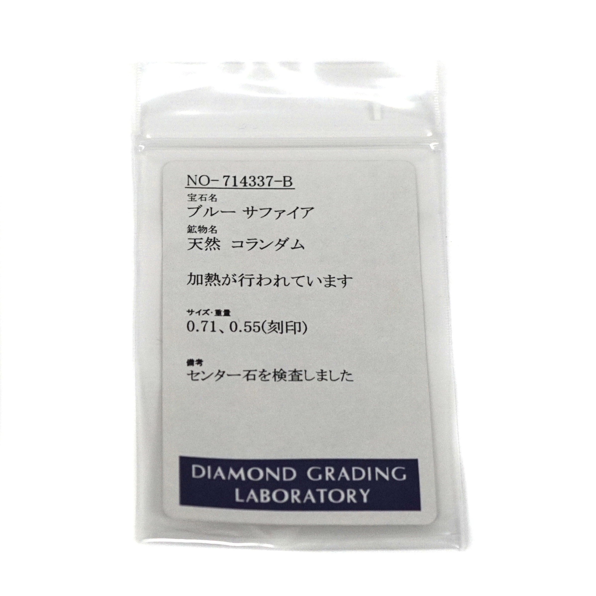 | 素材 | Pt900(プラチナ) S0.71ct(ブルーサファイヤ) D0.55ct(ダイヤモンド) |
