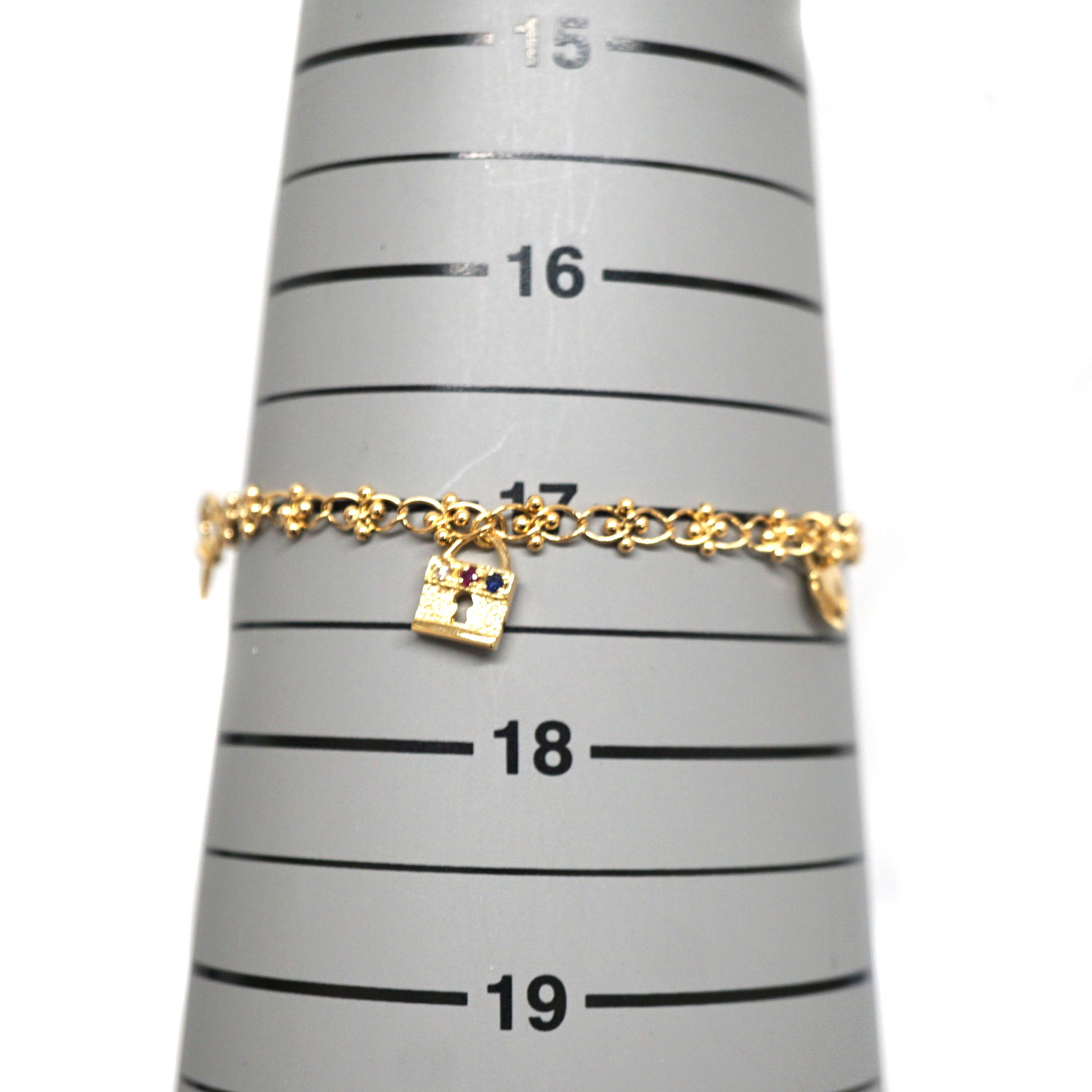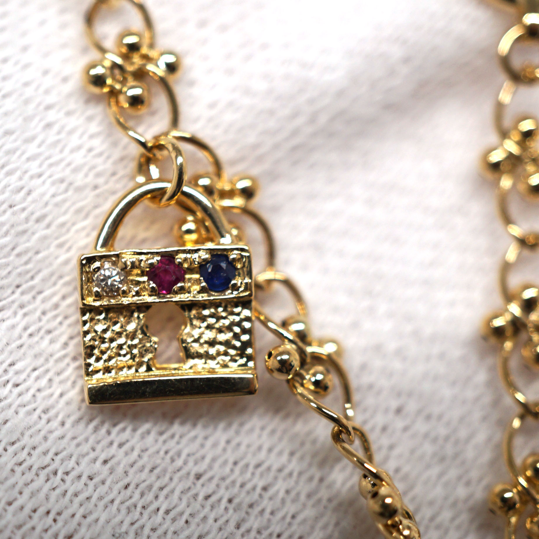 | 商品説明 | K18ダイヤモンドカラーストーンブレスレットのご紹介です。 ダイヤモンドとカラーストーンが施されたブレスレットです。 南京錠モチーのトップがとても可愛らしい印象の一点となっております。 この機会にぜひいかがでしょうか。 ※尚、当サイトの販売金額より店頭での販売金額の方をお安く設定させて頂いております。予め、ご了承下さいませ。(一部セール品等を除く) |